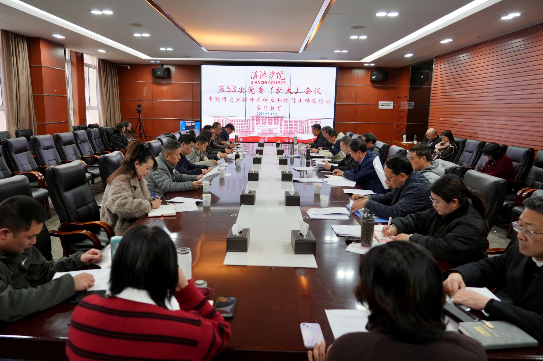 2026年3月9日,滇池学院召开党委(扩大)会议,专题研究安排开展树立和践行正确政绩观学习教育。