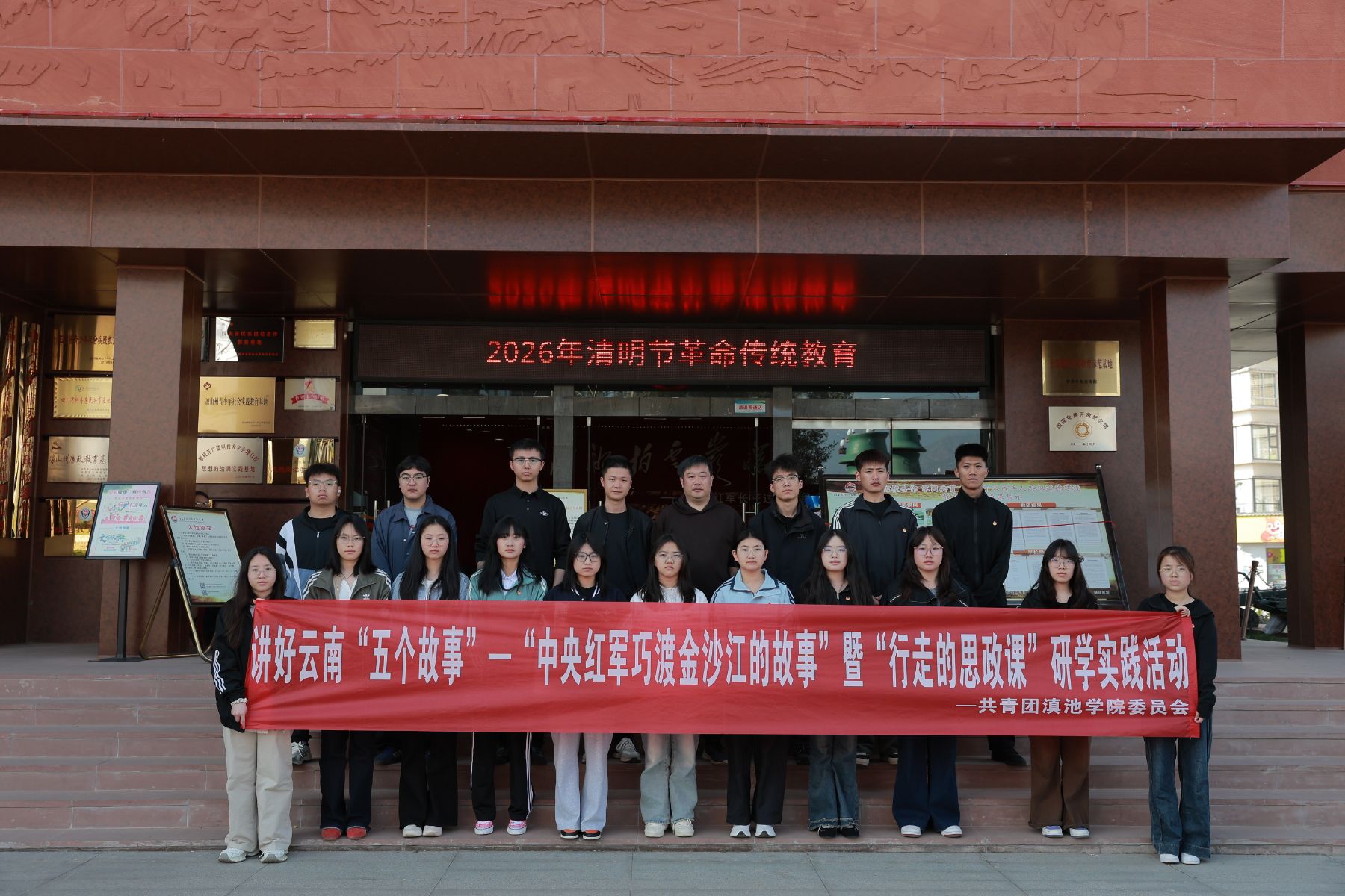 2026年清明节前夕,滇池学院团委组织师生沿中央红军长征行进路线,开展“讲好云南五个故事—中央红军巧渡金沙江的故事”暨“行走的思政课”研学实践活动。
