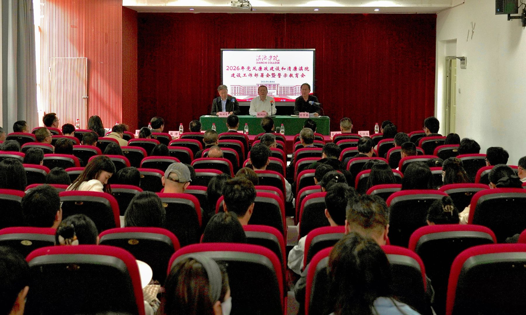 2026年4月8日,滇池学院2026年党风廉政建设和“清廉滇院”建设工作部署会暨警示教育会在海埂校区知行楼报告厅召开。