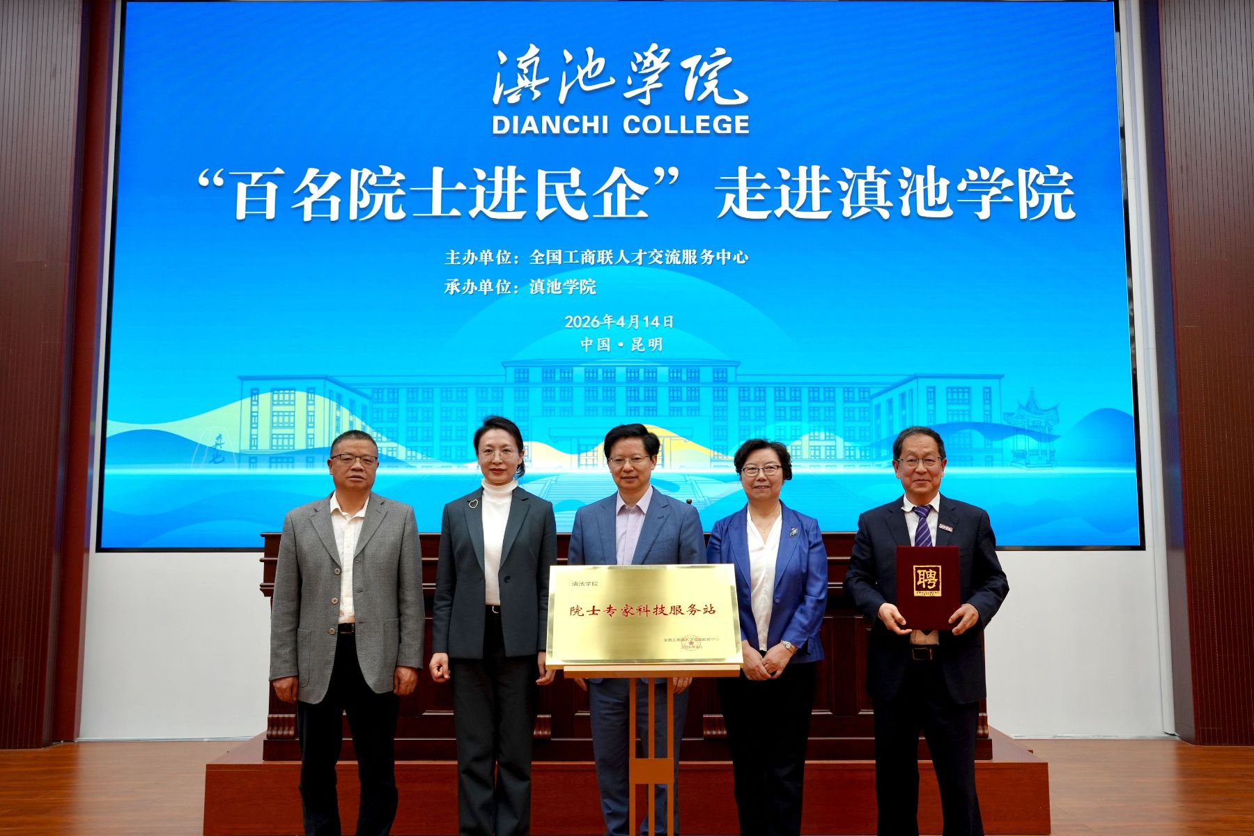 2026年4月14日,滇池学院“百名院士进民企”系列活动暨“院士专家科技服务站”揭牌仪式在滇池学院杨林校区举行。