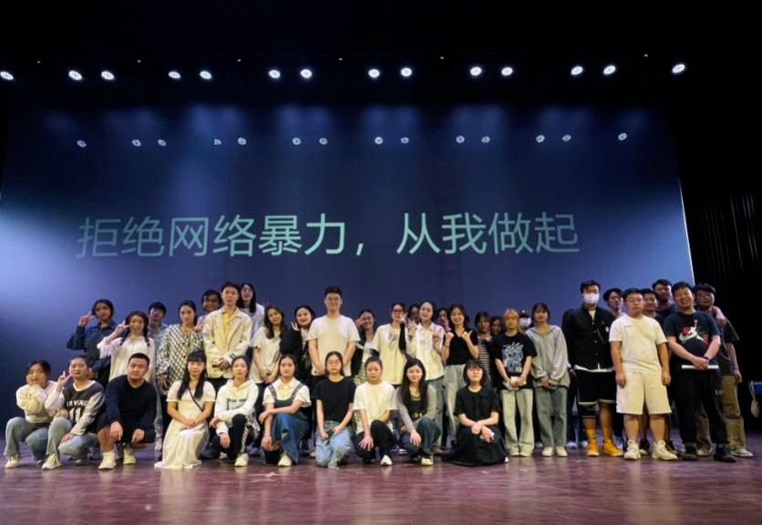 我校参赛作品《按键伤人》讲述了主角小美因错拿外卖而意外遭受网络暴力,经历过委屈和绝望后,小美勇敢站出来呼吁大家拒绝网络暴力的故事。剧中运用了独白、镜像等心理剧技术,呈现出小美内心痛苦、挣扎,最终勇敢发声的心路历程,达到以剧育心的效果。