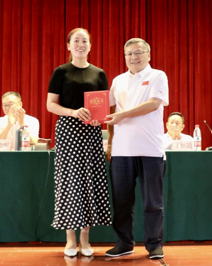 马杰院长向贾丽丽教授颁发“特别贡献奖”荣誉证书。