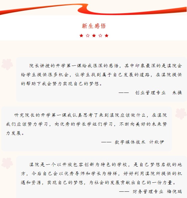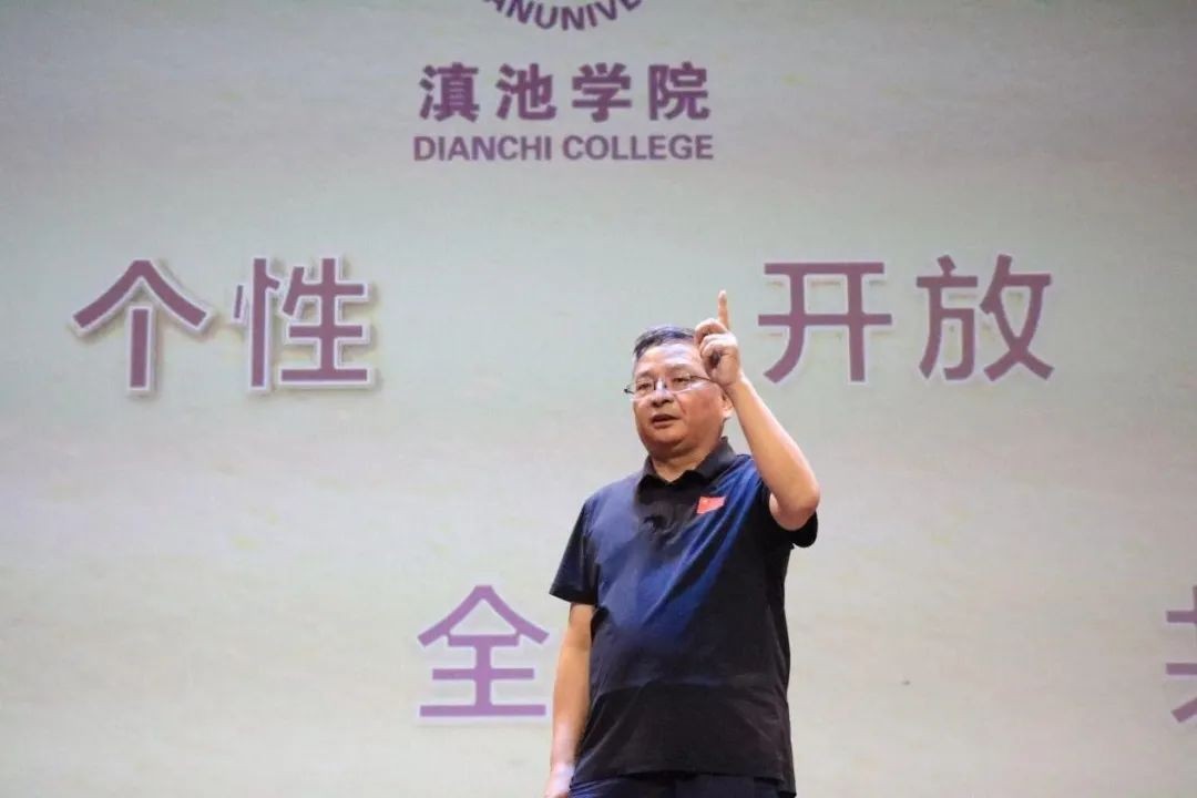 马杰院长首先代表学校和全体师生员工,欢迎新同学们从祖国的四面八方来到美丽的彩云之南,来到四季如春的昆明,来到大爱无疆、梦想起航的滇池学院。
