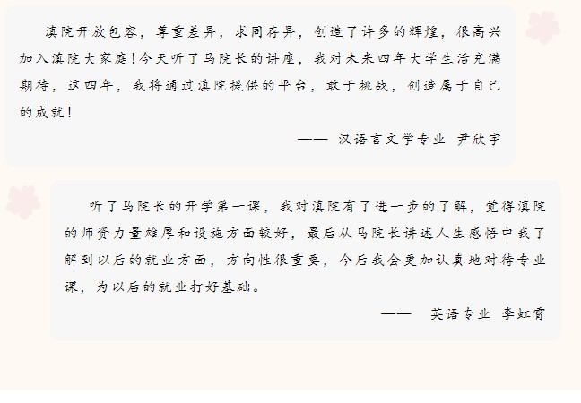 随后,马杰院长全面讲述了学校的育人理念、发展目标和路径以及丰硕的办学成果,介绍了学校优秀师资,讲述了优秀校友的奋斗故事。