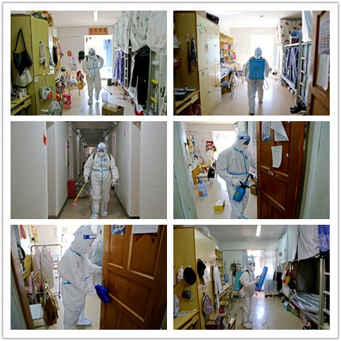 解除静态管理前,专业消杀人员对楼栋进行全覆盖、无死角的消杀,确保师生健康安全。