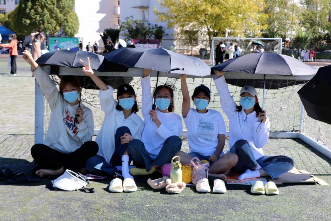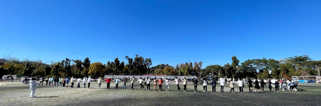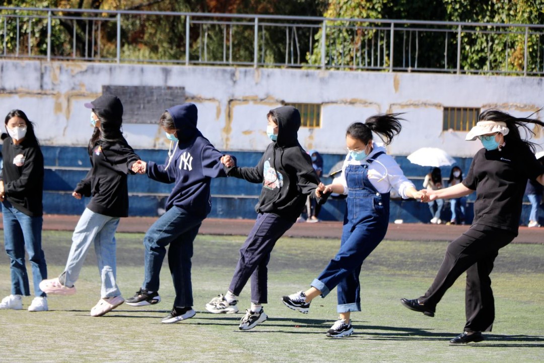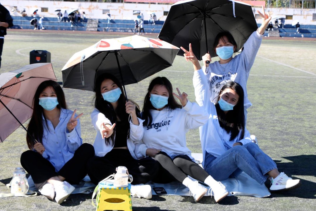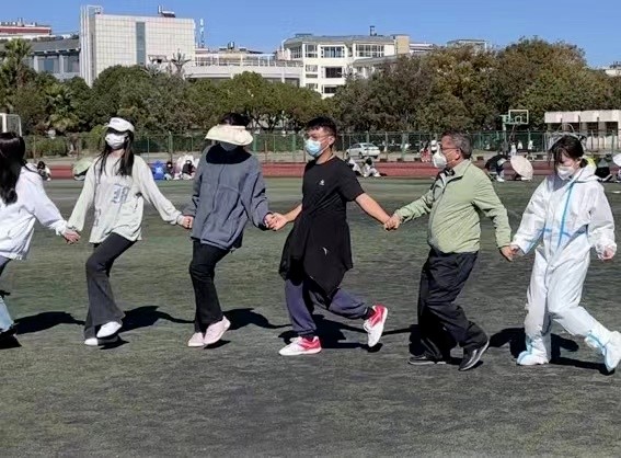 13:00,解封的同学们走出宿舍楼,来到操场共同庆祝解封。