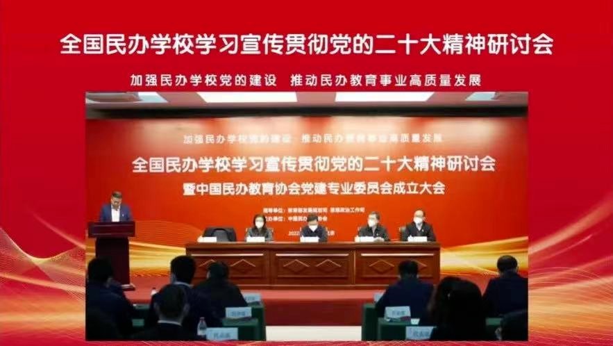 11月18日,由教育部发展规划司、思想政治工作司指导,中国民办教育协会主办的全国民办学校学习宣传贯彻党的二十大精神研讨会暨中国民办教育协会党建专业委员会成立大会在北京举行。