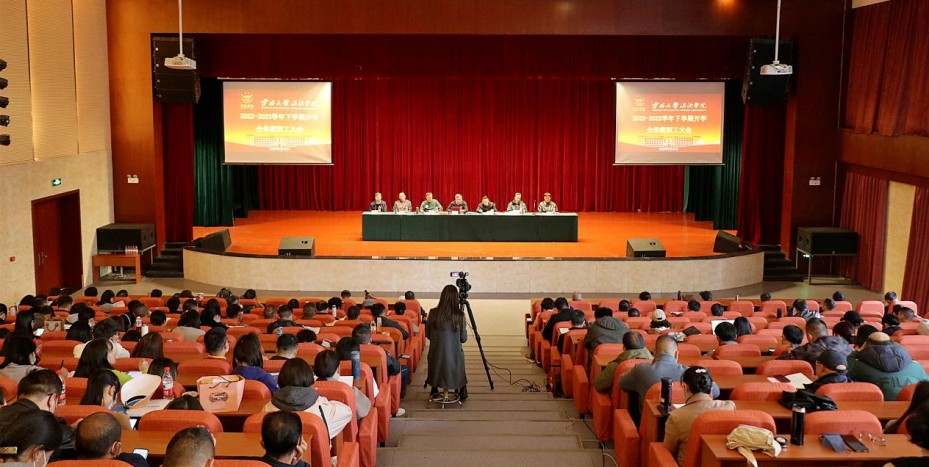 2月22日,我校在海埂校区崇志楼报告厅召开2022—2023学年下学期开学全体教职工大会。学校校领导、党委委员、董事会办公室主任,各职能部门、教辅部门副科级及以上人员,各教学单位副科级以上管理人员、副高级职称以上人员,全体辅导员、组织员,学校督导在报告厅主会场参会,其余教职员工通过视频直播方式参会。
