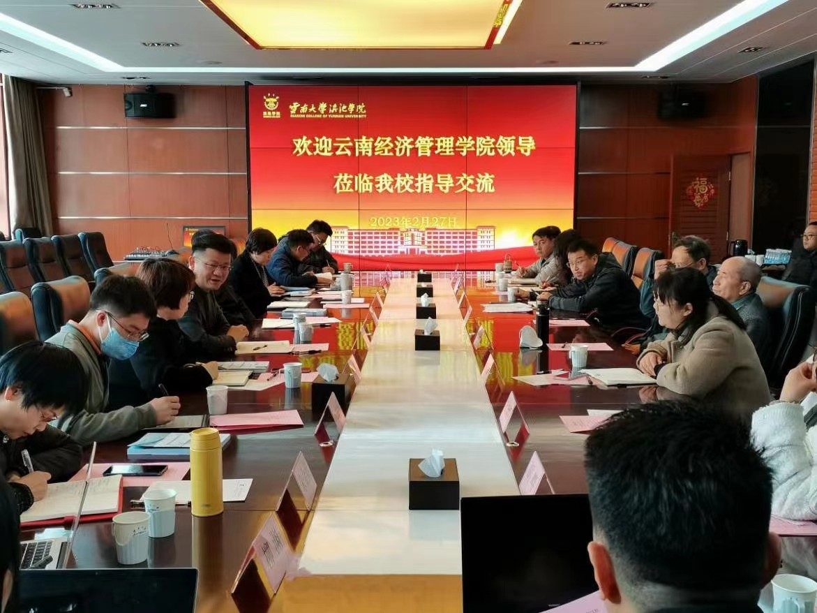 2月27日上午,云南经济管理学院副校长王艳琴一行12人到我校海埂校区就招生就业工作交流座谈。云南大学滇池学院副院长高力、会计学院院长张荐华、招生就业处处长蔡煜、会计学院党总支书记沈静、经济学院党总支书记张晋铭、经济学院金融系系主任赵燕妮,会计学院团总支书记杨知恬、会计学院行政助理胡畔、会计学院教学办公室主任刘阳及招生就业处工作人员参会。