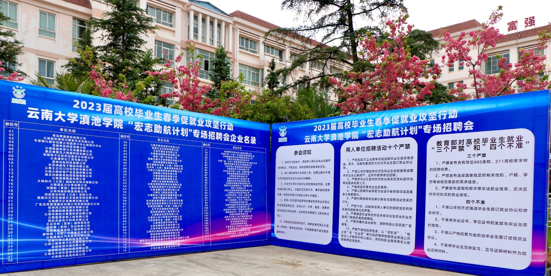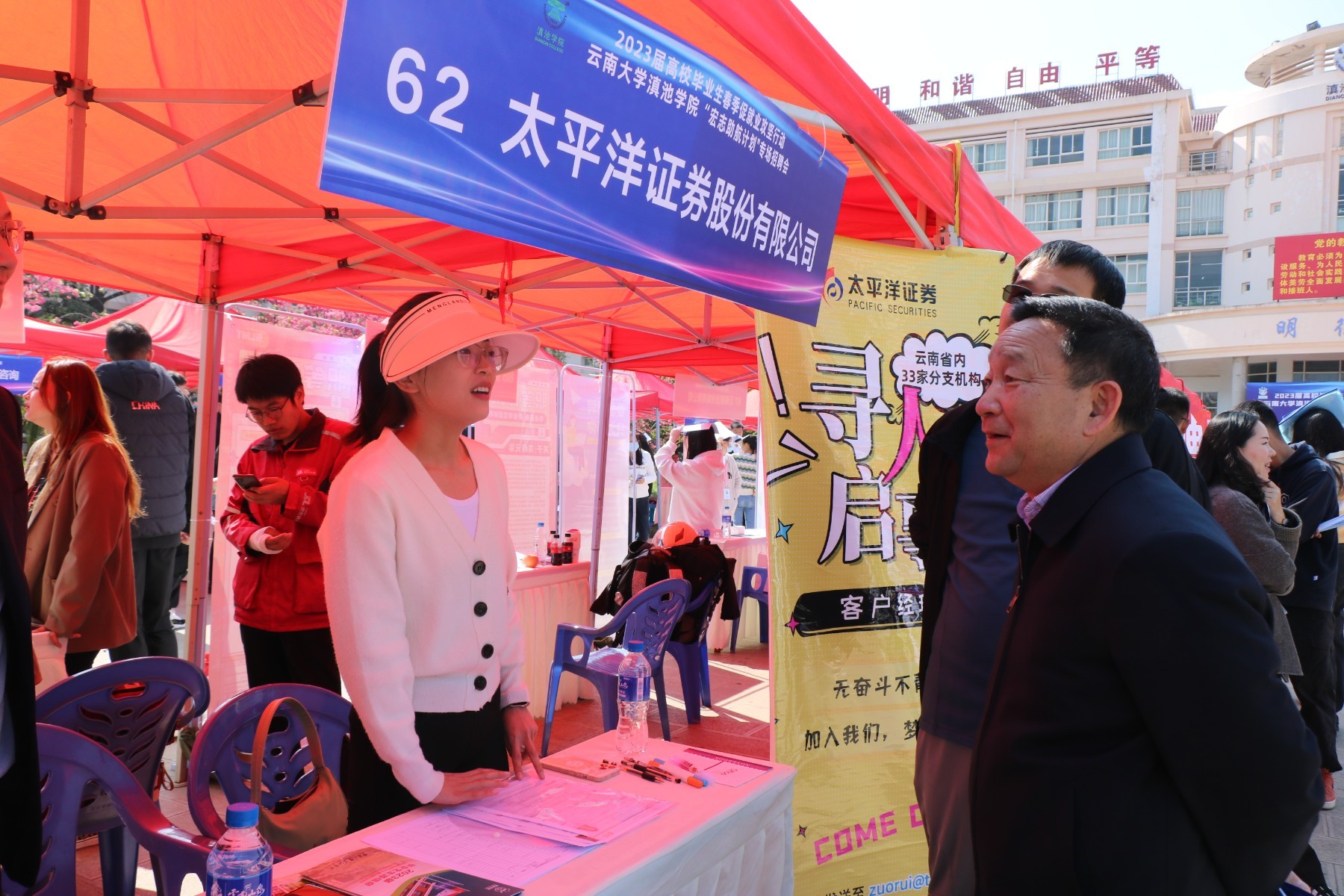 3月29日,我校在海埂校区英才广场举办2023届高校毕业生春季促就业攻坚行动·云南大学滇池学院“宏志助航计划”专场招聘会,云南大学滇池学院院长马杰、党委书记丁恒道、副院长高力、副院长张建东到现场指导工作。