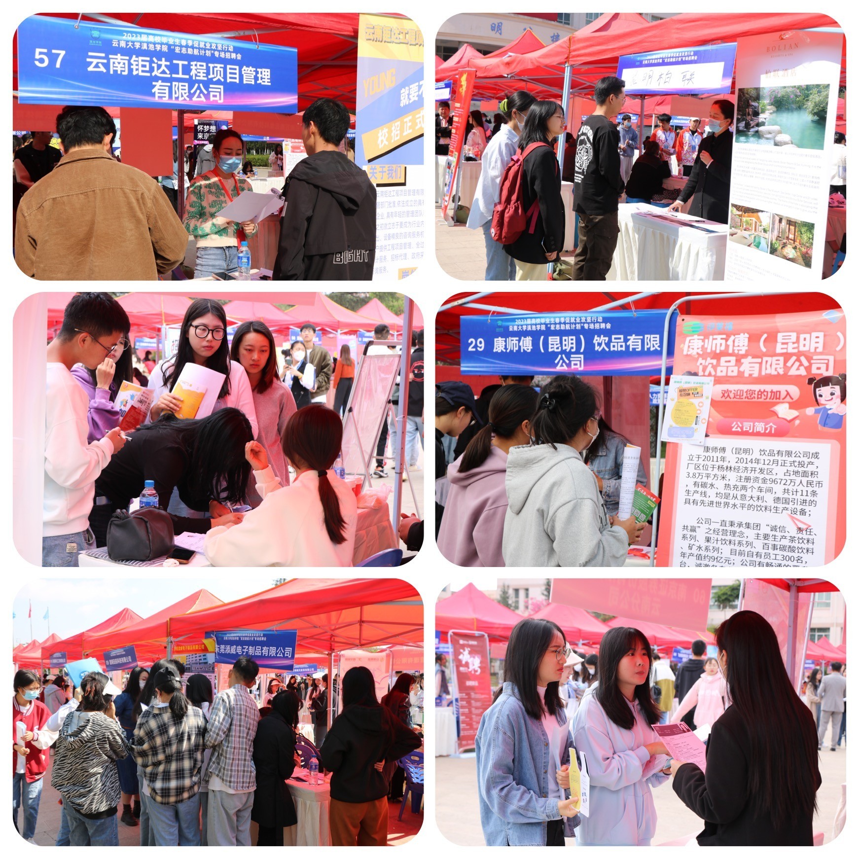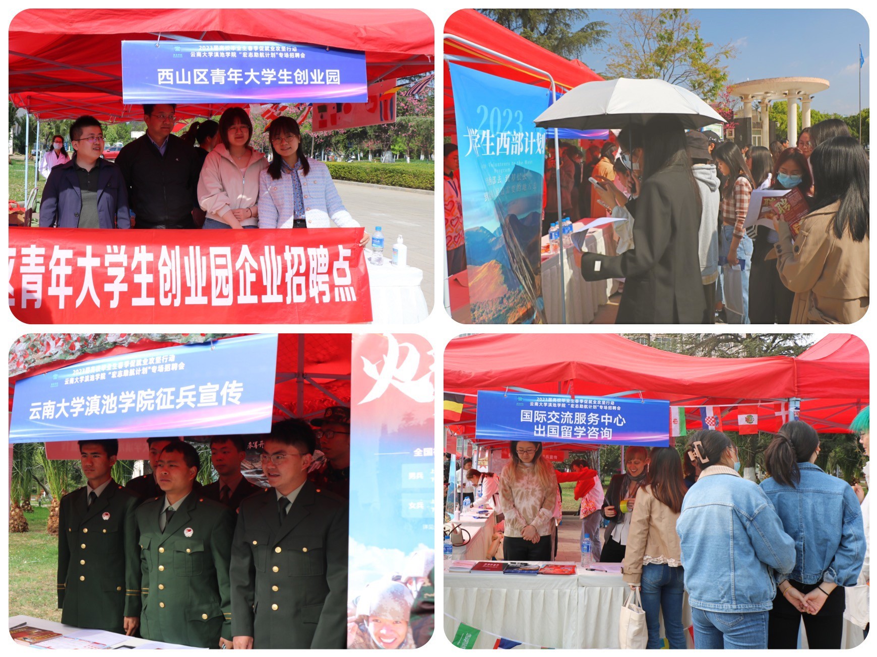 我校2023届毕业生总数达6379人,其中云南省内生源毕业生4922人,省外生源毕业生1457人,涉及经、法、教育、文、理、工、管、艺术等8个学科门类44个本科专业。本次招聘会设置了西山区人力资源和社会保障局政策宣传服务点、云南大学滇池学院征兵宣传、大学生志愿服务西部计划、西山区省级青年大学生创业园、国际交流服务中心等展位,向毕业生提供就业政策咨询,引导和鼓励毕业生积极就业创业,进一步推动我校毕业生更高质量就业、创业。