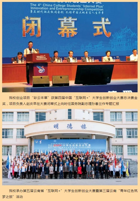 获全省教育系统先进集体、云南省三全育人试点院系、云南省就业创业先进集体、云南省深化创新创业教育改革示范高校、云南省创新创业典型经验高校、云南省创建一流党建示范党支部、云南省实践育人创新创业中心、云南省青年创业示范园、云南省校园创业平台等;获云南省第八届高等教育教学成果一等奖、云南省第九届高等教育教学成果二等奖。
