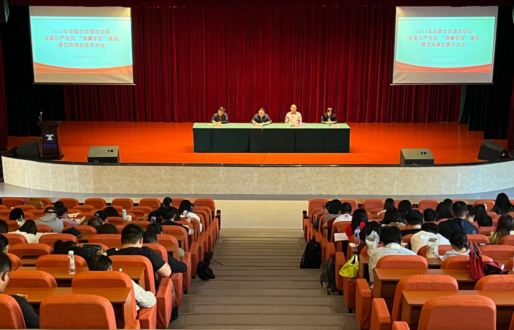 4月7日,云南大学滇池学院2023年全面从严治党、“清廉学校”建设暨正风肃纪警示大会在我校海埂校区崇志楼报告厅召开。丁恒道书记、张建东副院长,党委委员李启华、李璐,学校副科级及以上人员,副高级及以上职称人员、教研室主任、专业负责人,全体党支部书记参会。会议由张建东副院长主持。