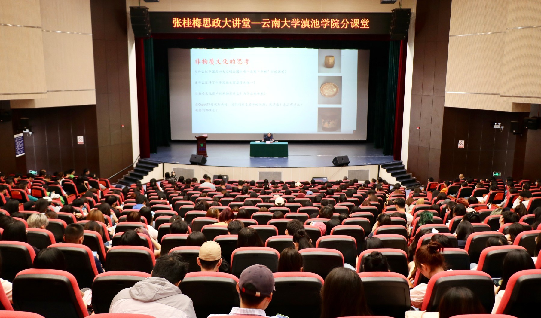 4月11日,“张桂梅思政大讲堂云南大学滇池学院分课堂”第二讲在云南大学滇池学院杨林校区报告厅举行,学校特邀第十三届、第十四届全国政协委员田静担任主讲嘉宾,作“非物质文化遗产的当代价值实践”专题报告。云南大学滇池学院院长马杰主持报告会,600余名师生代表聆听报告会。