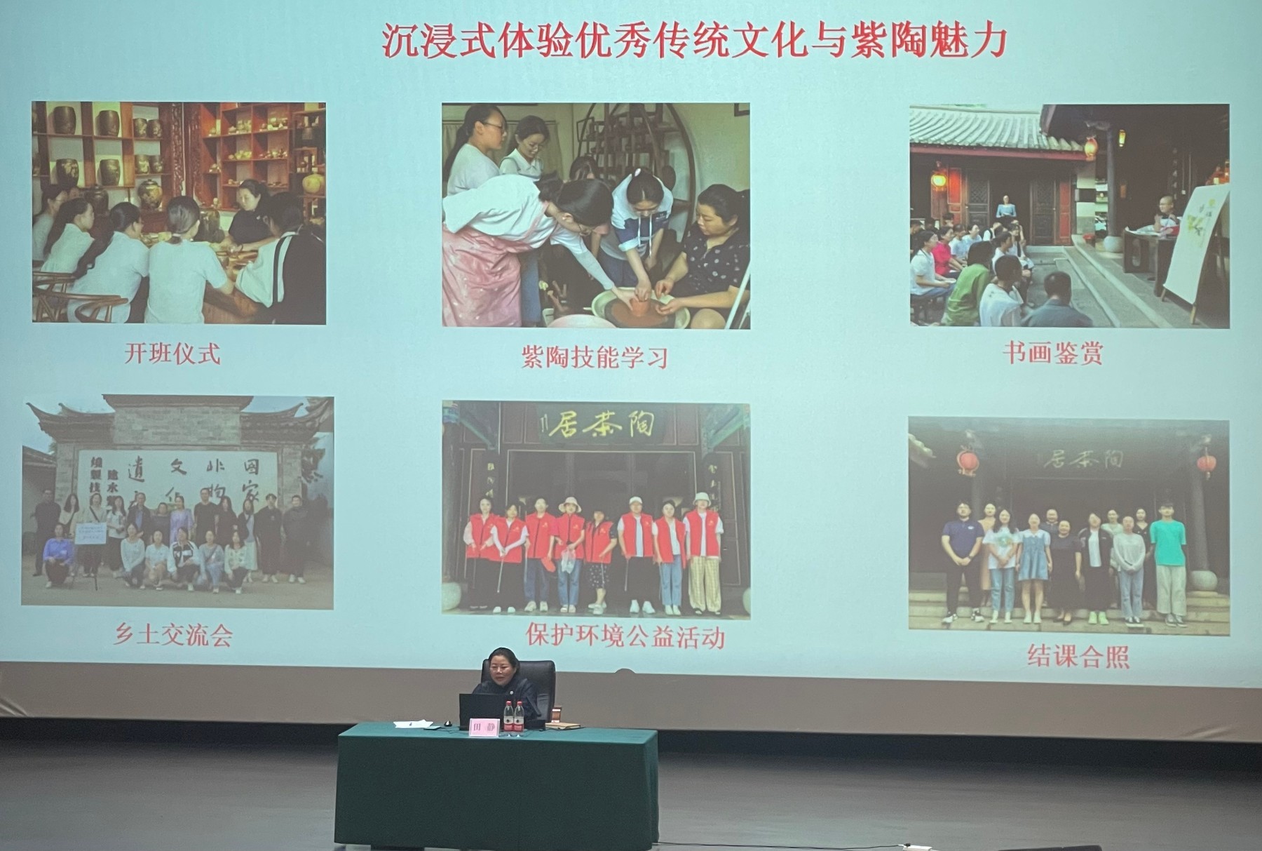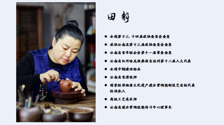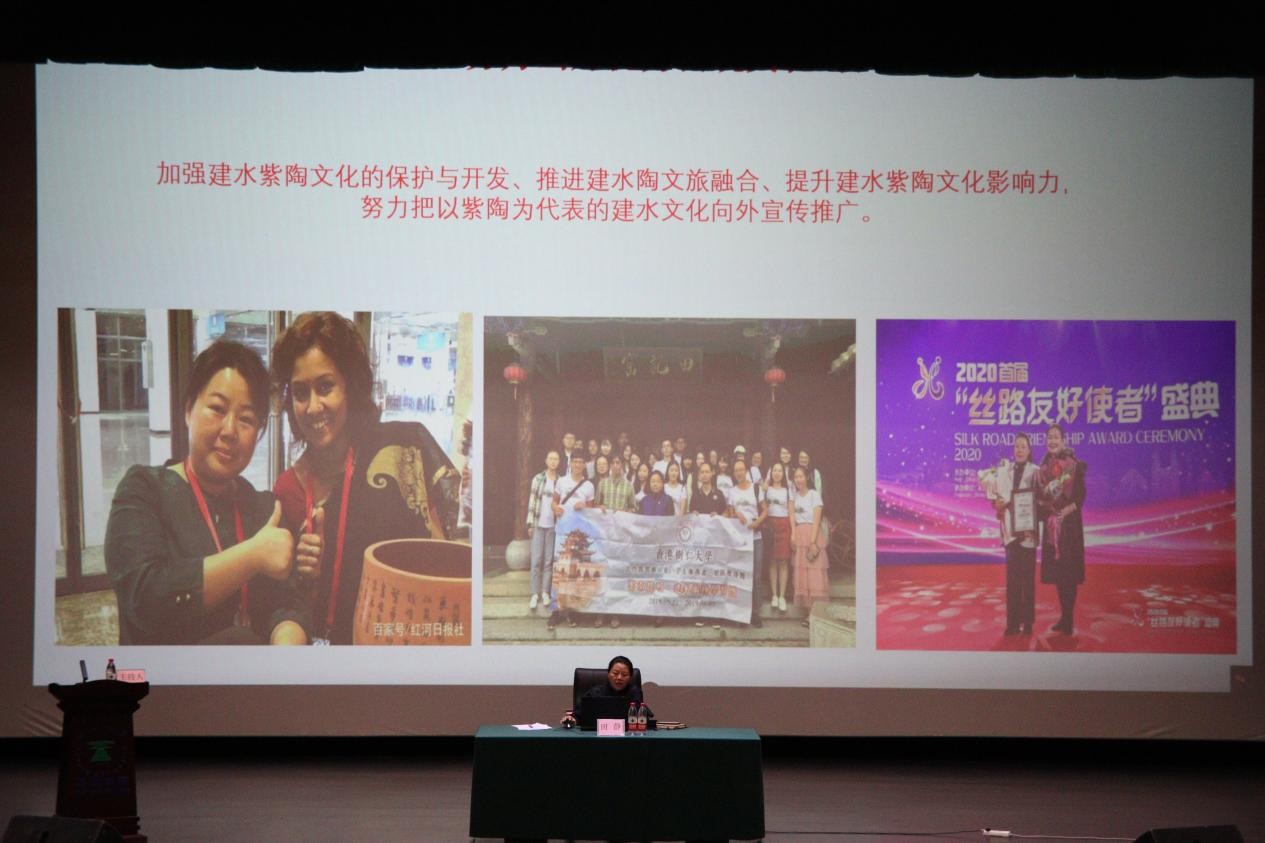 田静委员向在场师生讲授了建水紫陶的制作技艺,并与大家分享了建水县田静紫陶技艺传习中心开展的一系列非物质文化遗产传承实践项目。