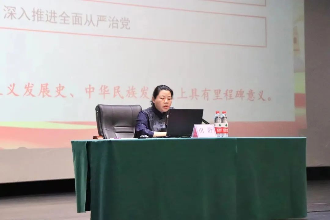 田静委员以党的二十大报告重点内容开篇,系统讲解了新时代的伟大变革及其里程碑意义、中国式现代化的鲜明特征。她强调要全面领会党和国家取得的重大成就,共同把“二十大”及两会精神深入学习好,广泛宣传好,坚决贯彻好,为全面建设社会主义现代化国家、全面推进中华民族伟大复兴而团结奋斗。