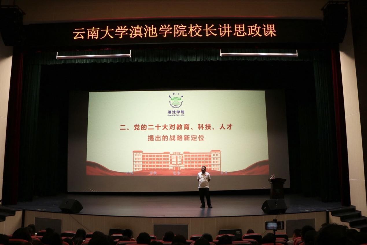 4月17日,云南大学滇池学院院长马杰在杨林校区报告厅为学生讲思政课。
