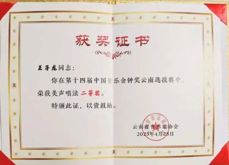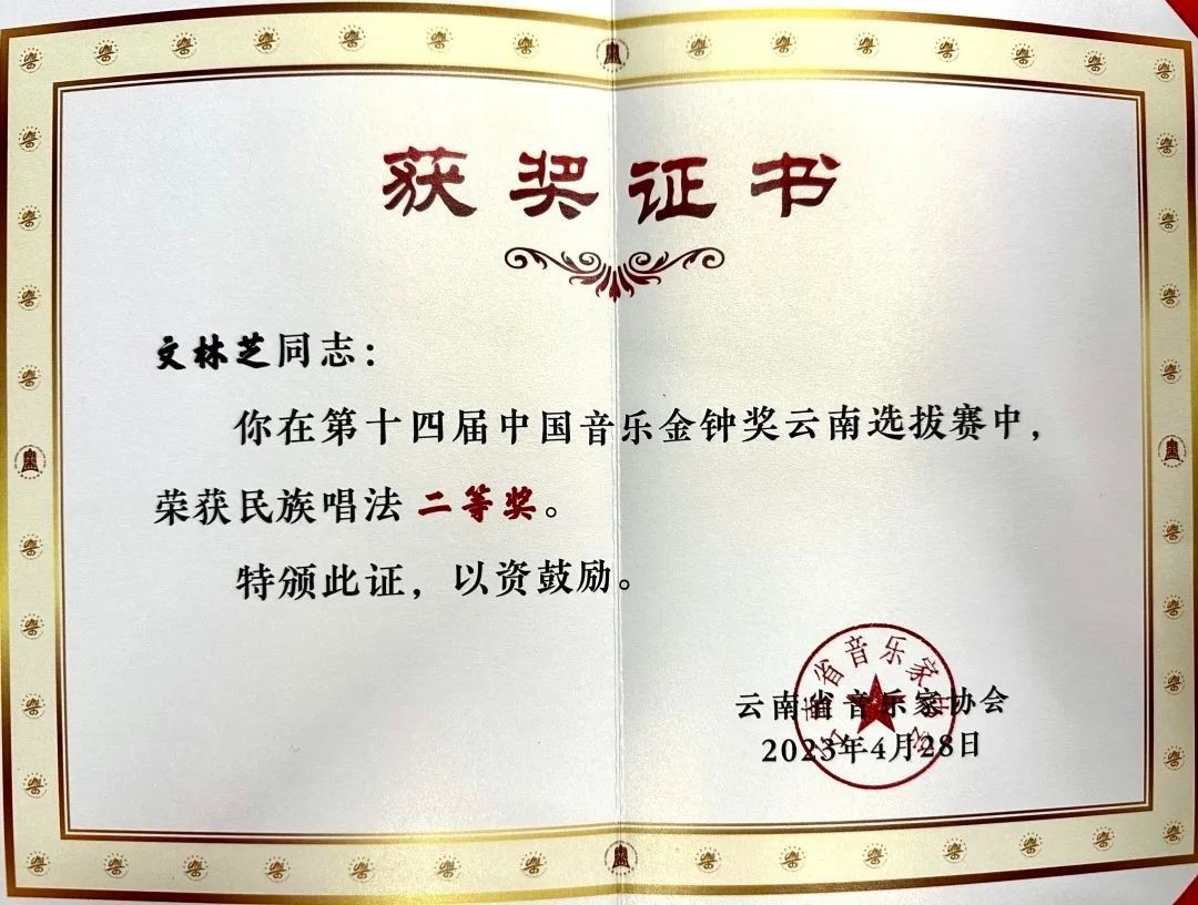 2023年4月24日至28日,由云南省音乐家协会举办的第十四届中国音乐“金钟奖”云南选拔赛在云南艺术学院圆满落幕,来自全省各州市音协、各高校院系、省直属文艺院团等单位的200余名音乐专业选手参加角逐。