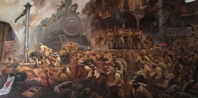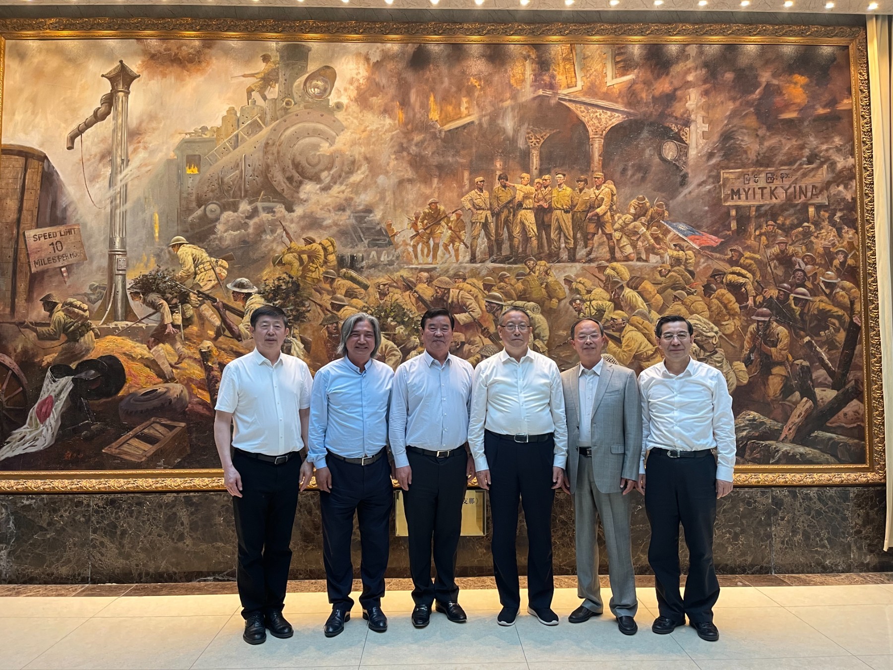 5月9日晚,全国人大常委会副委员长郑建邦、全国政协副主席何报翔、中国美术馆馆长吴为山等一行还欣赏品鉴了在北京收藏的另一幅由赵力中教授创作的巨幅历史油画作品《中国远征军决战密支那》,并给予一致赞誉与好评。
