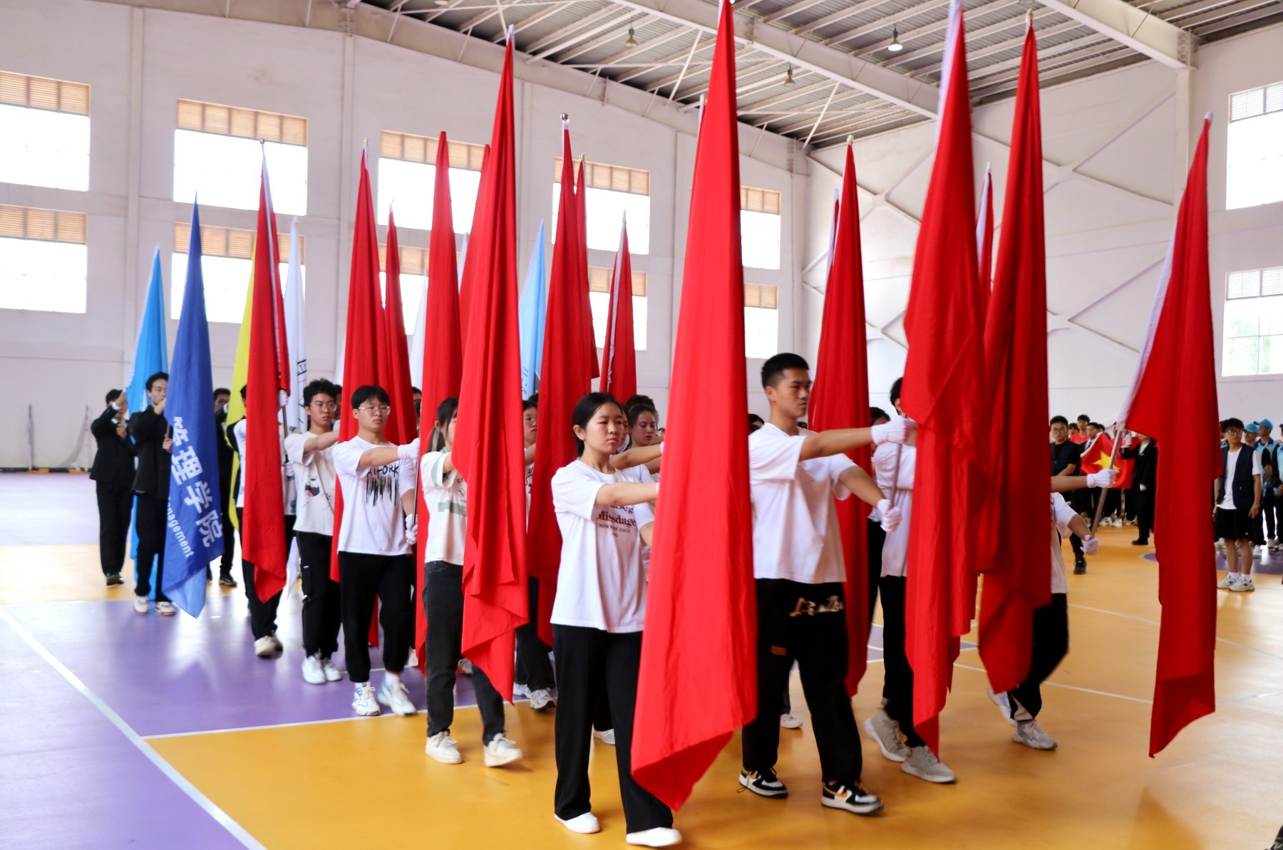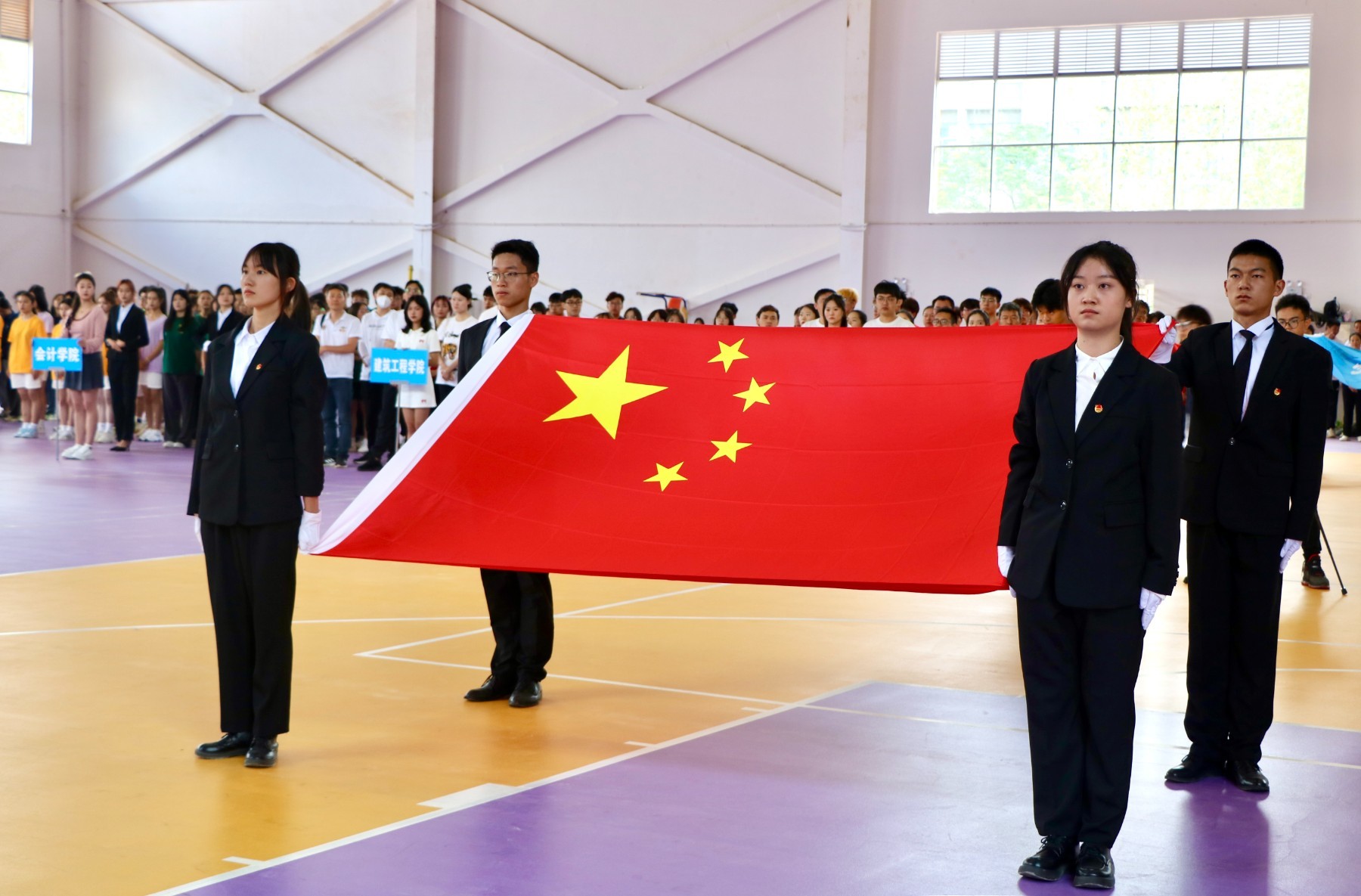 激昂的国歌奏响青春的旋律,伴随着热血的运动员进行曲,国旗队护送着鲜艳的五星红旗庄严入场。