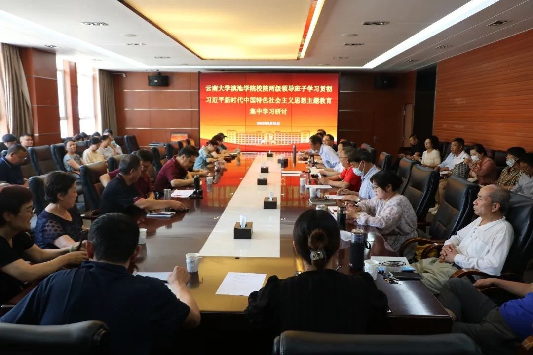 5月31日,云南大学滇池学院举行校院两级领导班子学习贯彻习近平新时代中国特色社会主义思想主题教育集中学习研讨会。学院领导、党委委员、董事会办公室领导、各单位各部门负责人参加学习研讨。