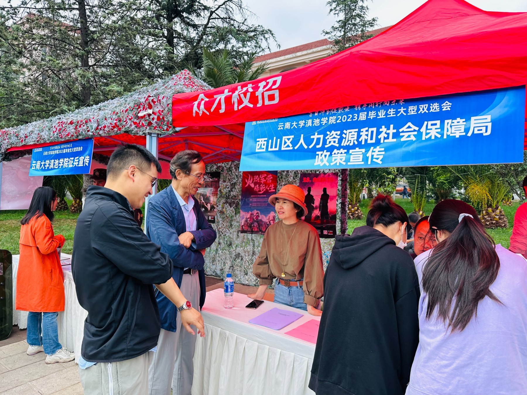 本次双选会设置了西山区人力资源和社会保障局政策宣传服务点、云南大学滇池学院征兵宣传、简历诊断等展位,向毕业生提供就业政策咨询、简历优化等服务,引导和鼓励毕业生积极就业创业。
