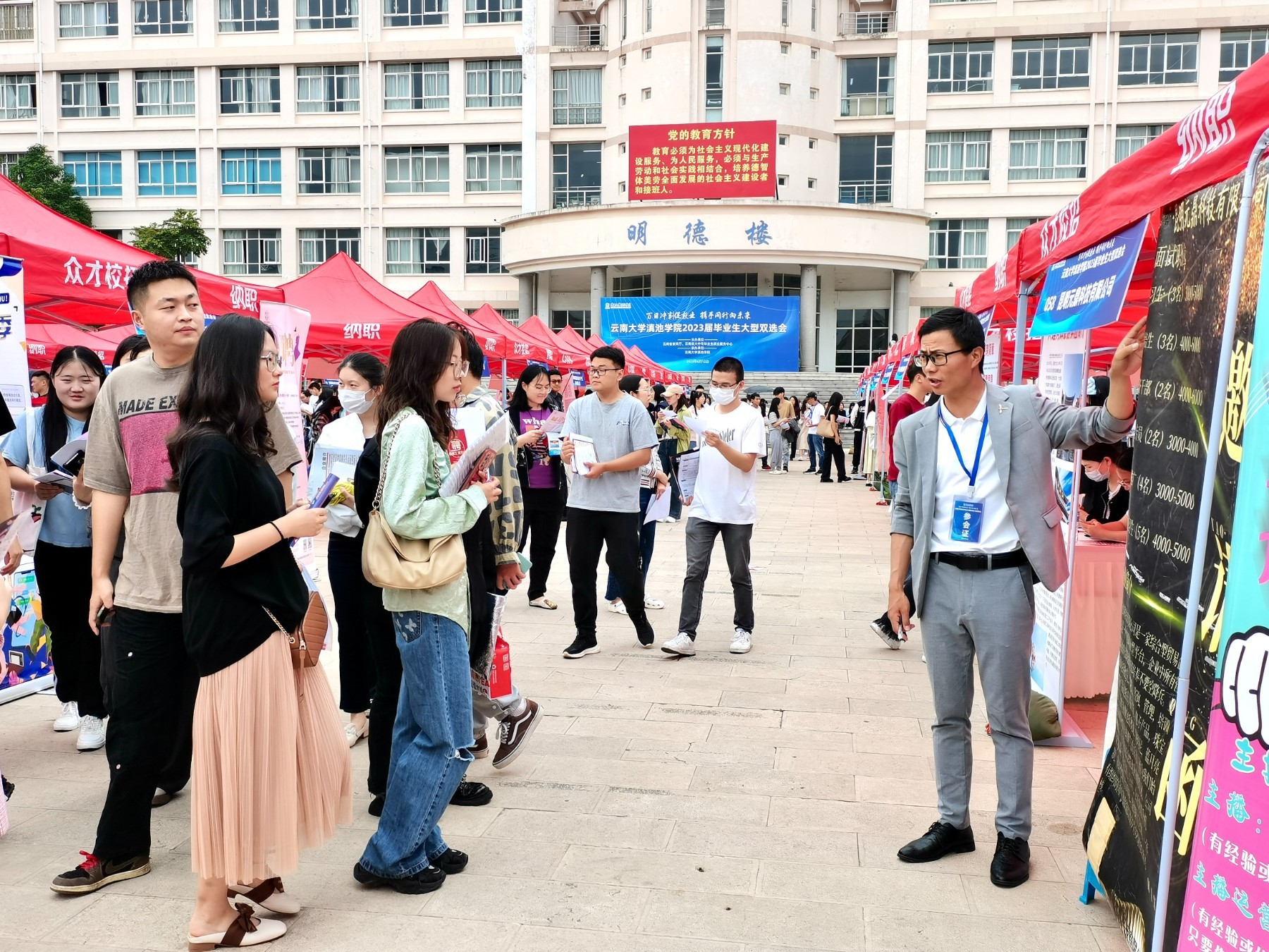 6月12日,我校在海埂校区英才广场举办了“百日冲刺促就业 携手同行向未来”云南大学滇池学院2023届毕业生大型双选会。昆明西山区人力资源和社会保障局副局长张丽霞,昆明西山区就业局局长杨旭伟、副局长杨坤桦,云南大学滇池学院副院长高力到现场指导工作。