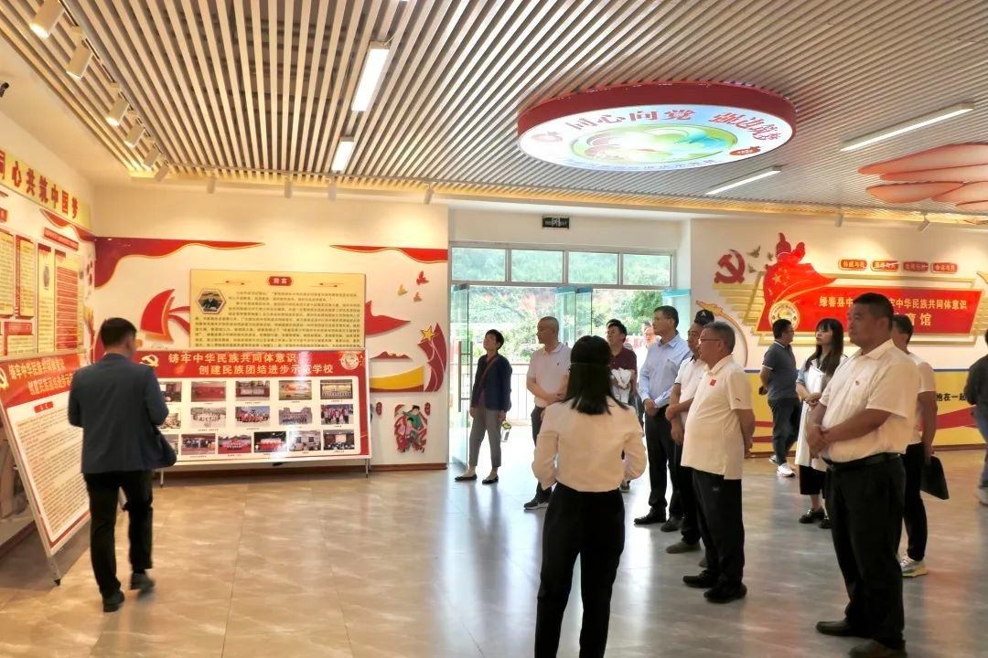 上午,马杰院长一行在绿春县委常委、县人民政府常务副县长李晓忠,县人民政府教育督察室主任卢建元及绿春县高级中学党委书记陈云山、校长陈维新等陪同下参观了绿春县高级中学的教学设施、铸牢中华民族共同体意识主题教育馆、党建展厅和艺体特色办学成果展览室。