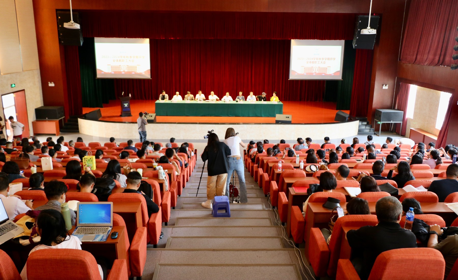 8月28日,云南大学滇池学院2023-2024学年上学期开学全体教职工大会在海埂校区崇志楼报告厅召开。学校校领导、党委委员、董事会办公室主任,各职能部门、教辅部门副科级及以上人员,各教学单位副科级及以上管理人员、副高级职称以上人员,全体辅导员,全体组织员,学校督导,新入职教职工在报告厅主会场参会,其余教职员工通过视频直播方式参会。会议由向晓明副院长主持。