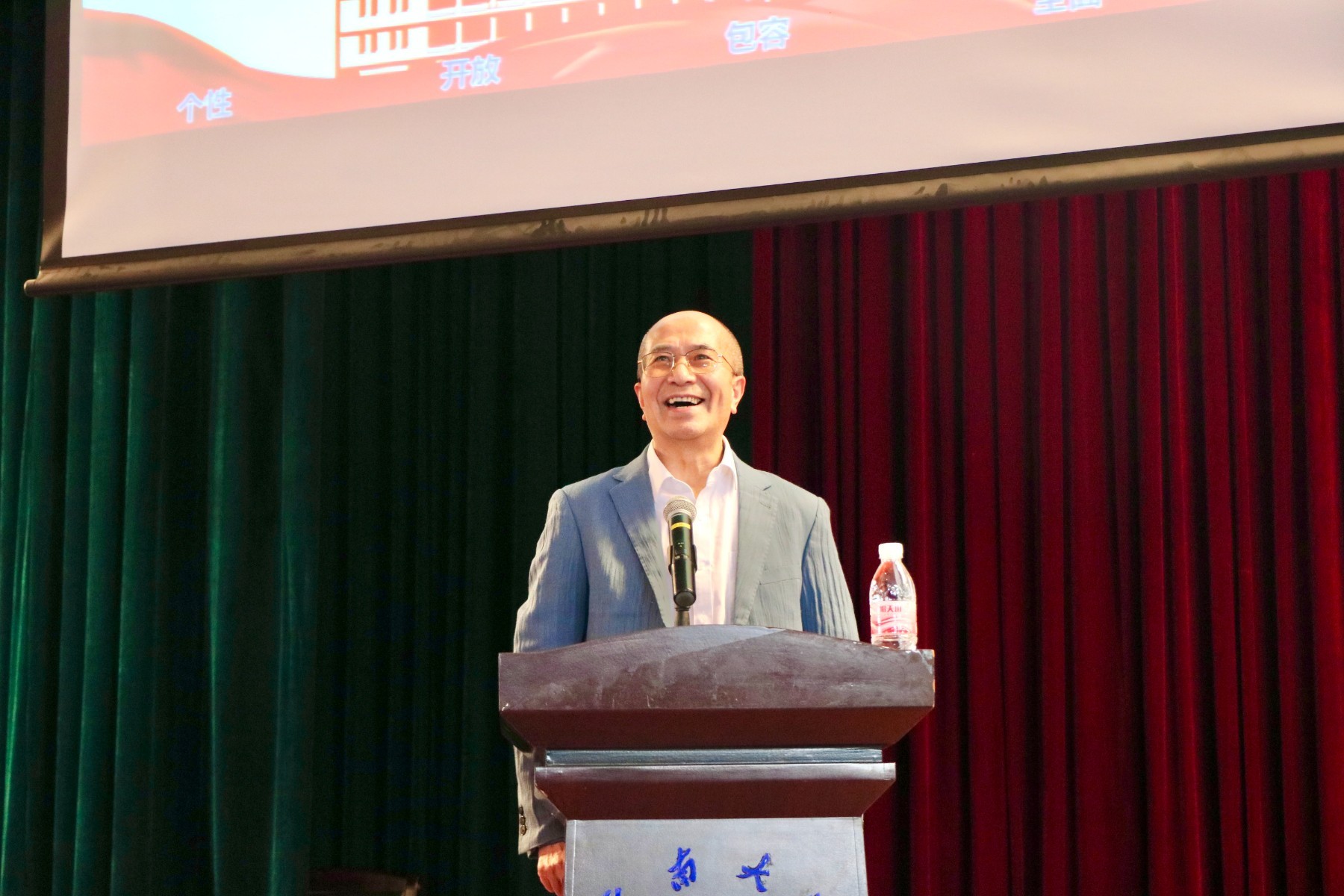 向一民教授讲话。他感谢学校的信任,分享了自己对教育价值的理解,并表示将努力建设好向一民名师工作室。
