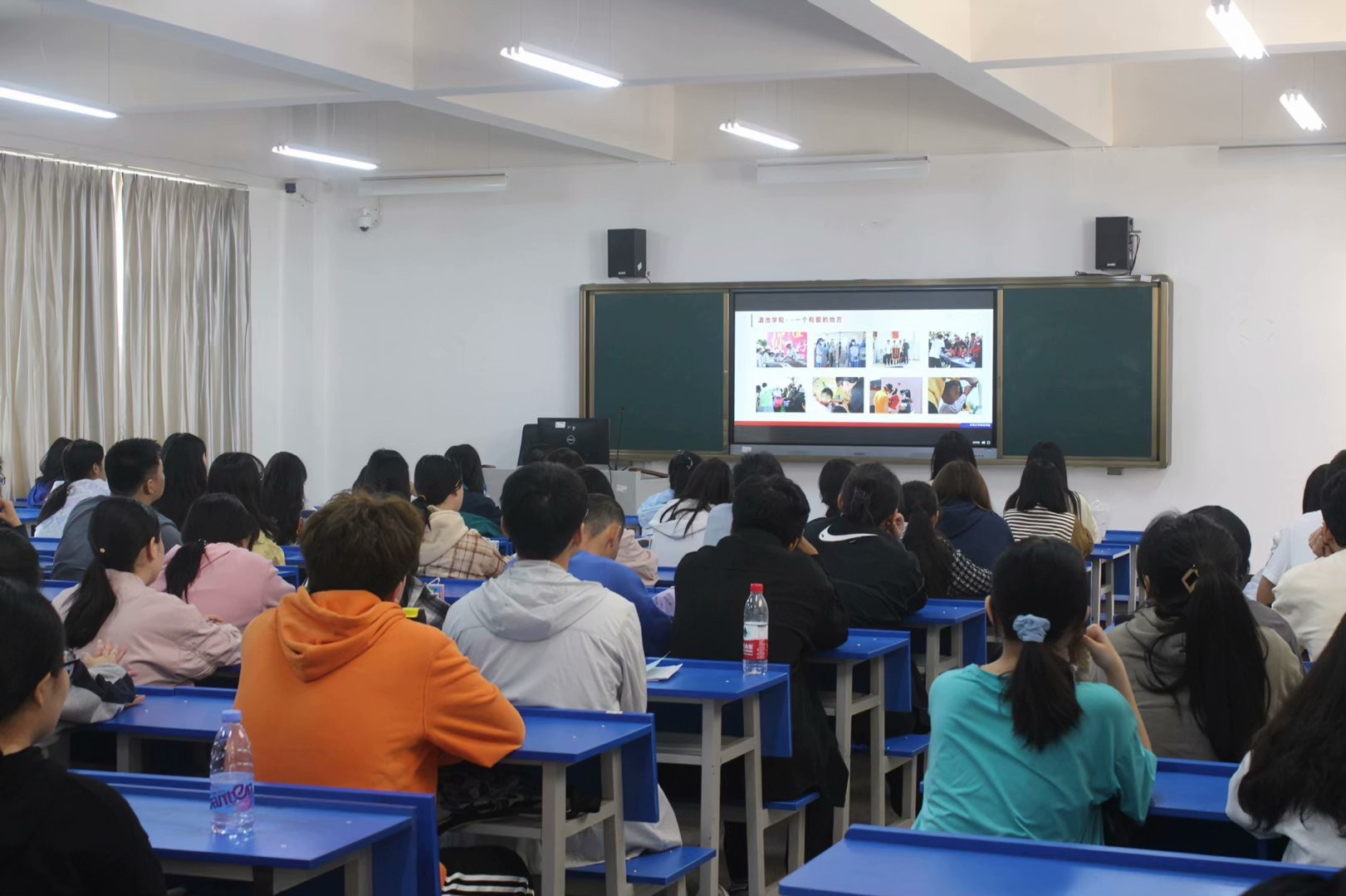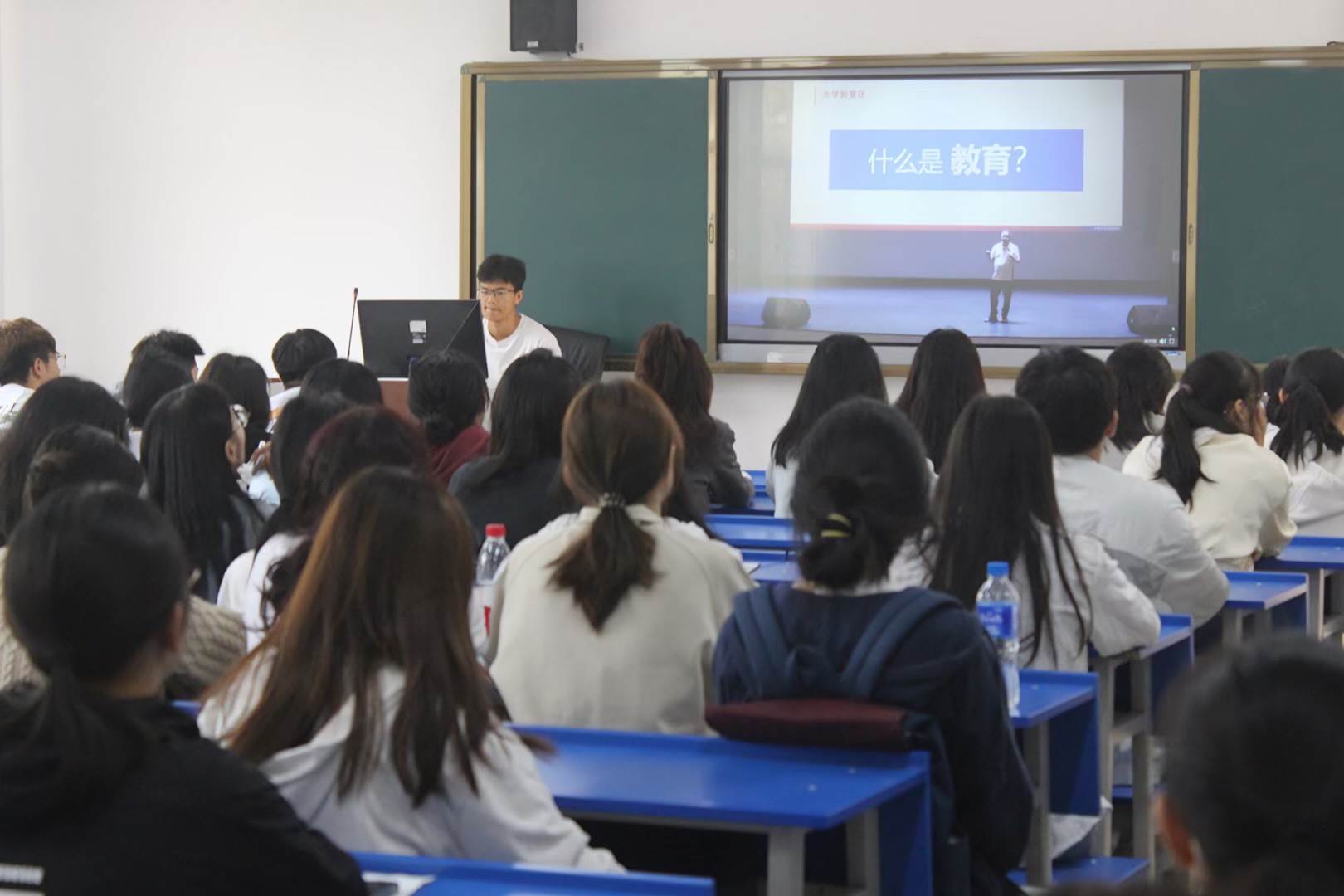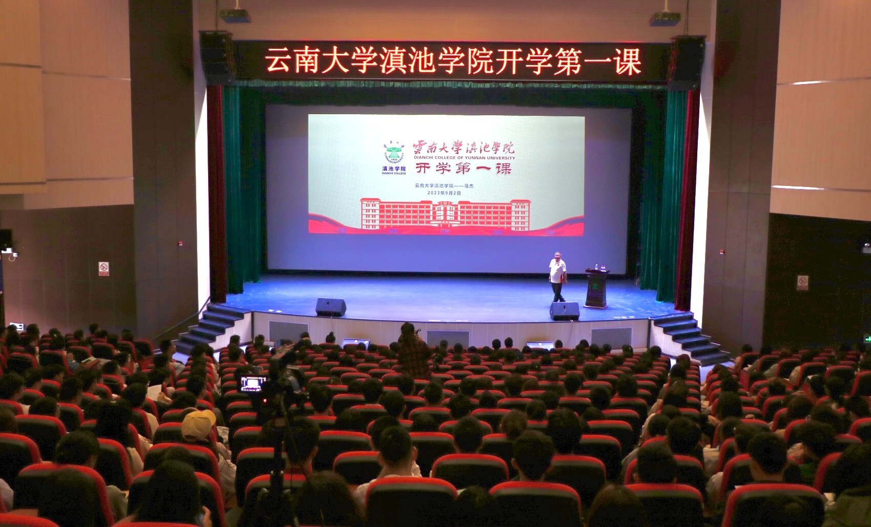 本次授课在杨林报告厅设置主会场,海埂校区和杨林校区教室设置分会场,2023年入学的全体新同学通过现场和网络直播的形式聆听授课。