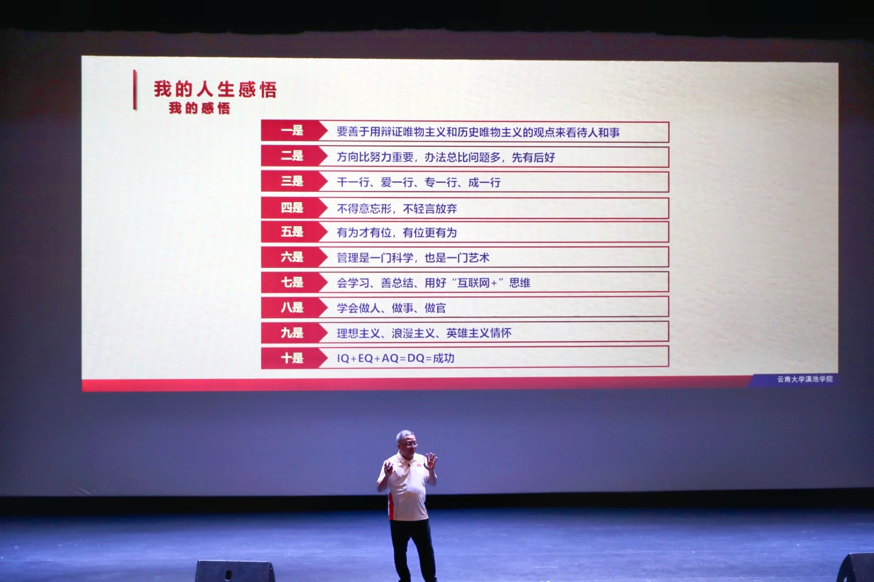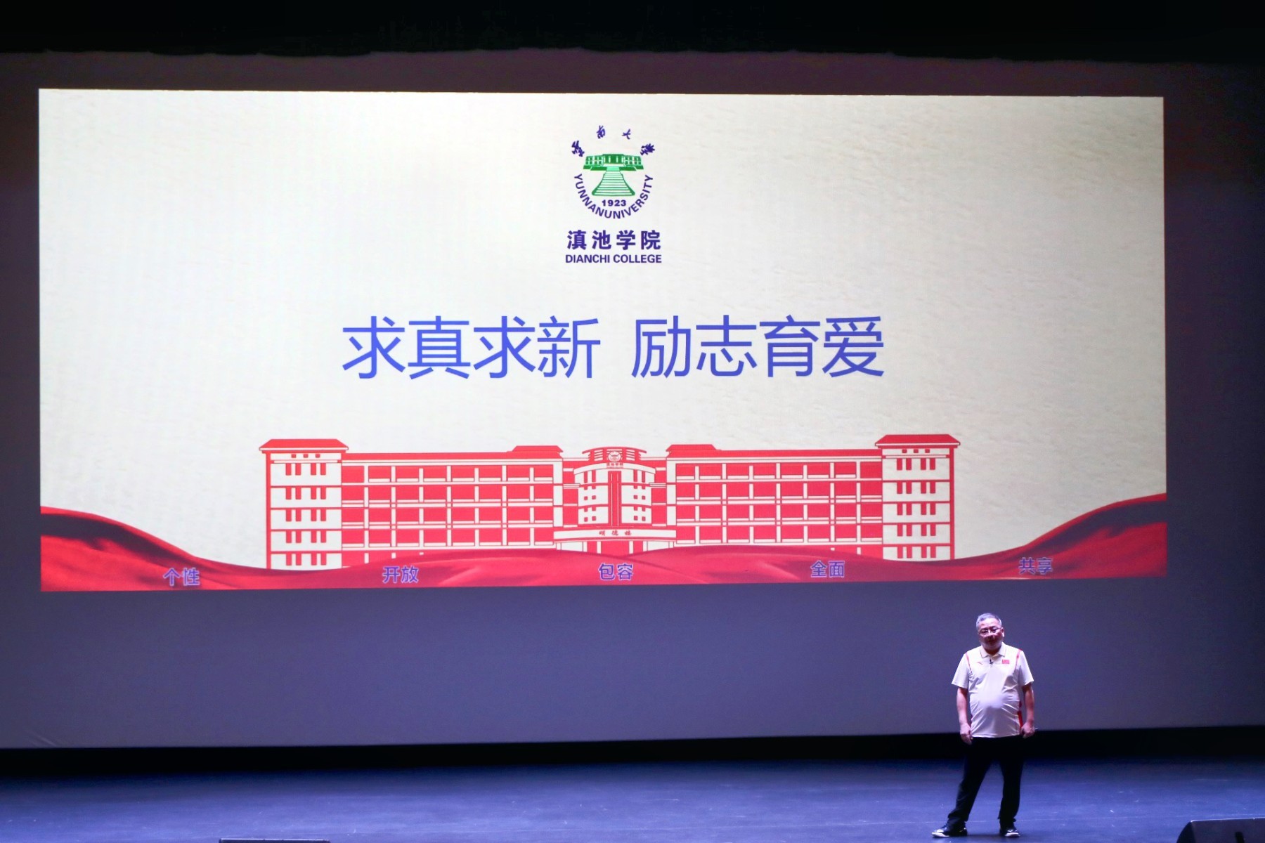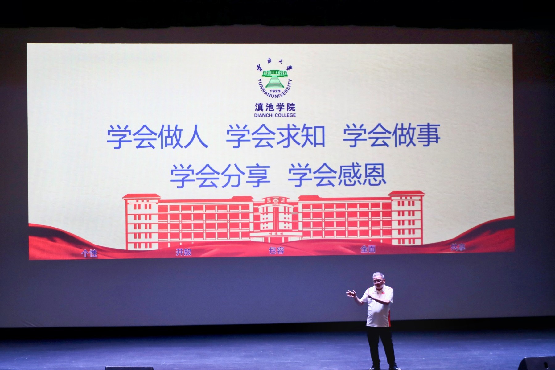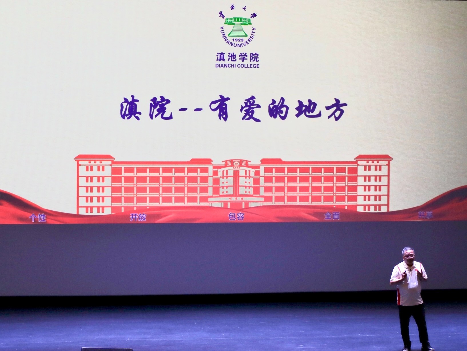 马杰院长以“滇院 有爱的地方”引入,向同学们展现了云南大学滇池学院充满爱的点滴,并阐述了教育的起源、概念以及教育“发现人、塑造人、培养人”的本质,通过对比中西方教育理念和大学概念向同学们阐释了大学的定义与内涵,带领同学们回顾了西南联大的办学历程以及云南大学的发展历史与成就。
