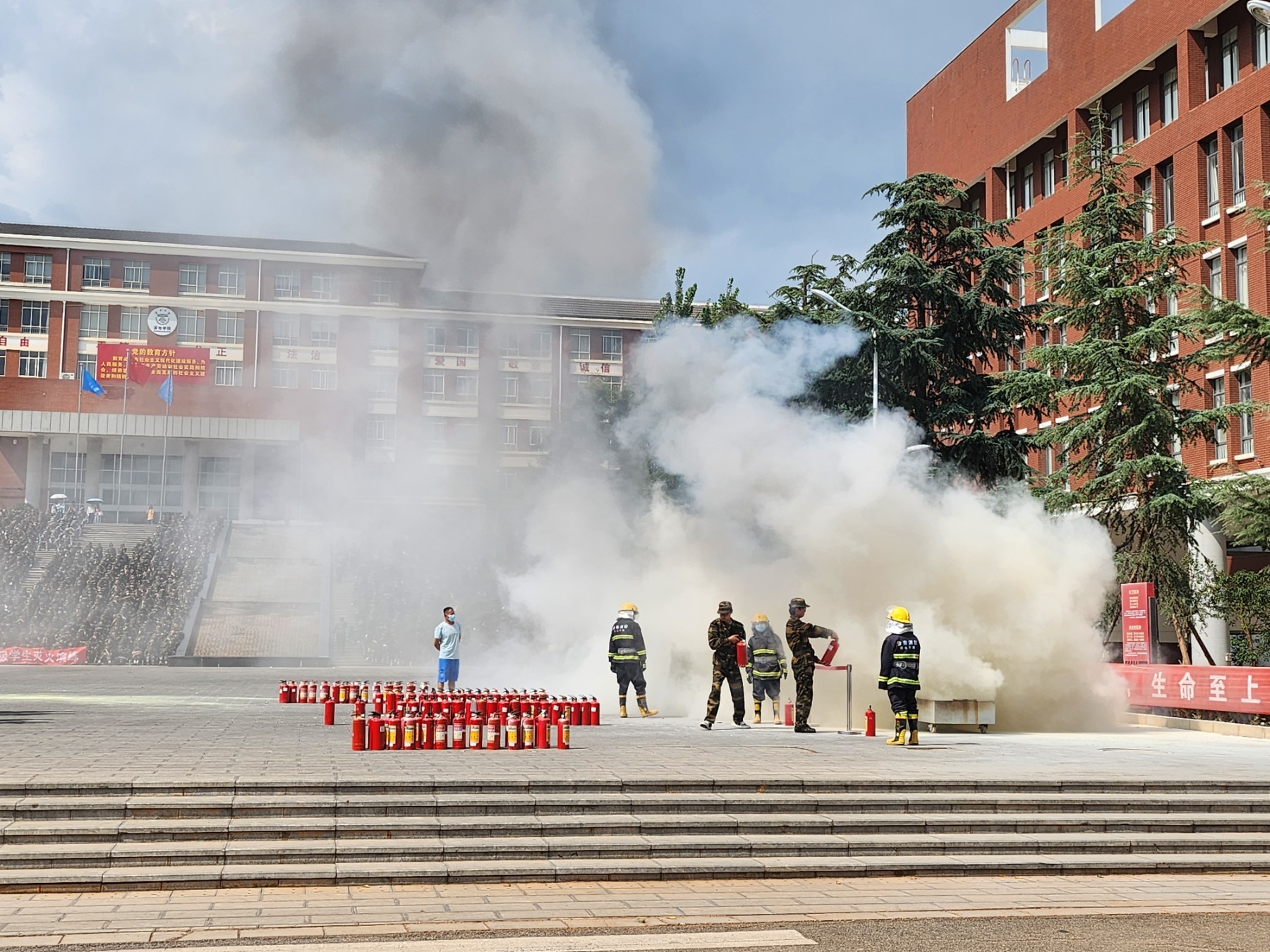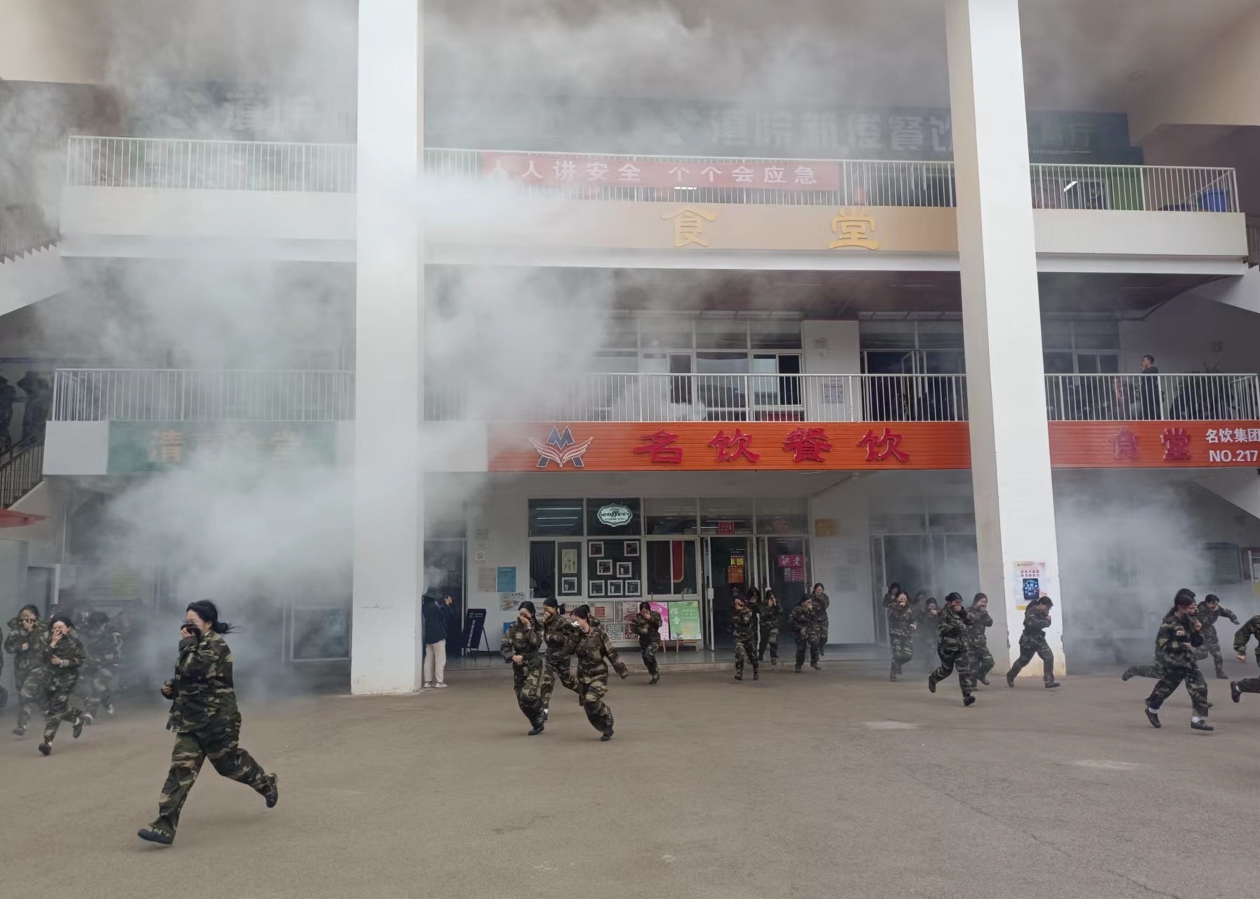 下午15:00,火灾、地震疏散演练正式开始,在几声连续而急促的哨音声中,参加演练的同学在最短的时间内分别从教学楼、宿舍楼、食堂等场所快速、有序的疏散到指定的安全区域。