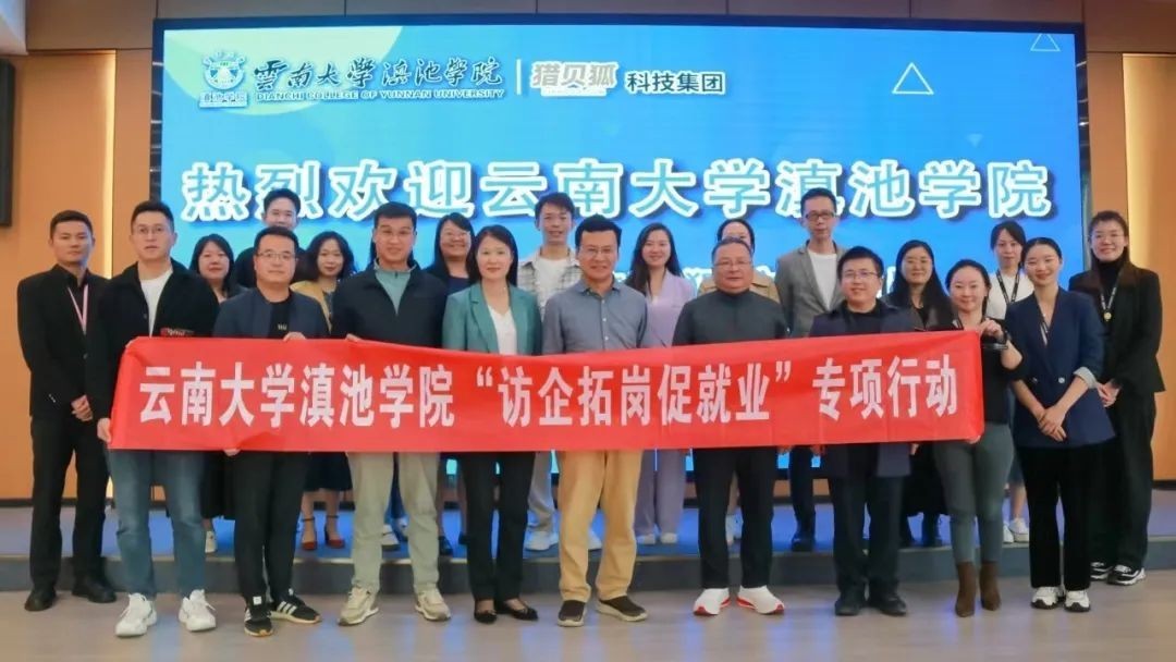为深入学习贯彻党的二十大精神,落实党中央、国务院“稳就业”“保就业”决策部署,云南大学滇池学院进一步深化校企合作,拓展毕业生就业创业渠道。10月31日,云南大学滇池学院院长马杰带队前往猎贝狐(昆明)科技集团有限公司走访交流,会计学院院长武晓芬、创新创业学院院长徐东明、招生就业处处长蔡煜、经济管理学院党委书记胡宇飞、会计学院党总支书记沈静、人文学院党总支书记董向诗杰、艺术学院党总支书记相萌随行走访。