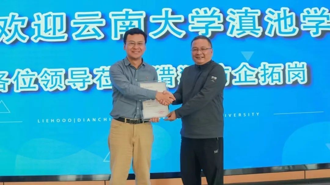 期间,马杰院长为猎贝狐(昆明)科技集团有限公司董事长吕世亮颁发聘书,聘任吕世亮董事长为云南大学滇池学院创新创业学院企业副院长。
