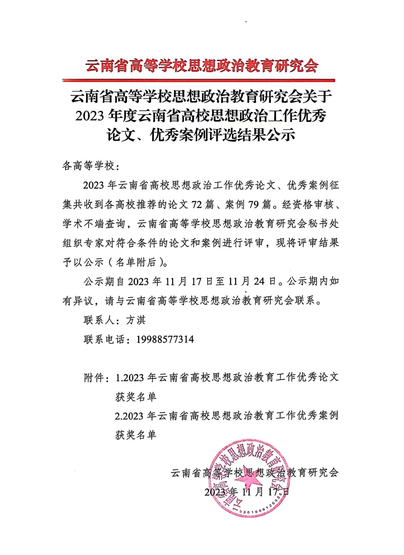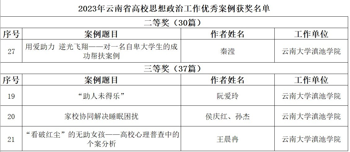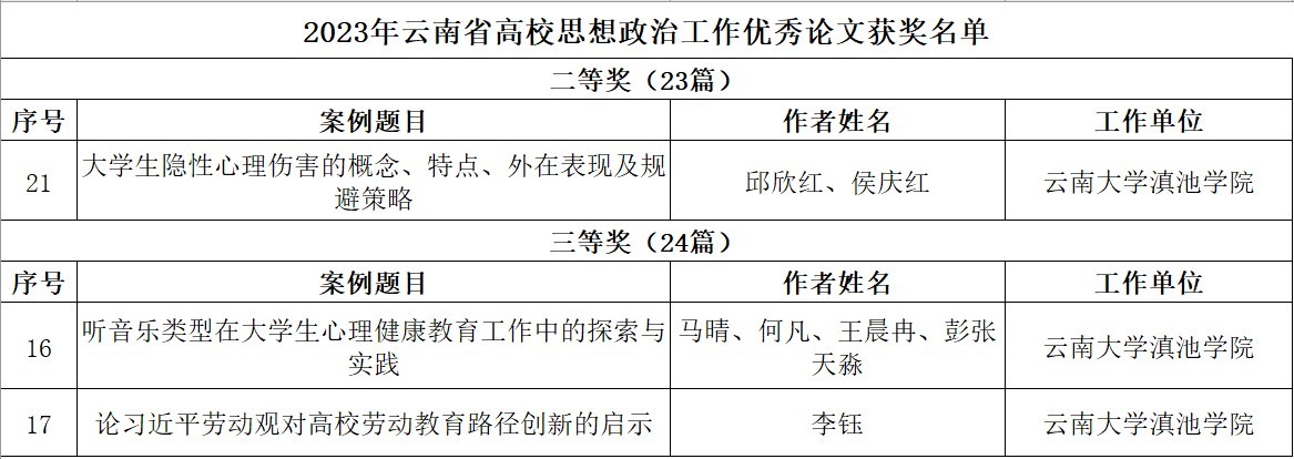 近日,云南省高等学校思想政治教育研究会公布了2023年度云南省高校思想政治工作优秀论文、优秀案例评选结果,我校选送的7篇优秀论文和优秀案例获评奖项。