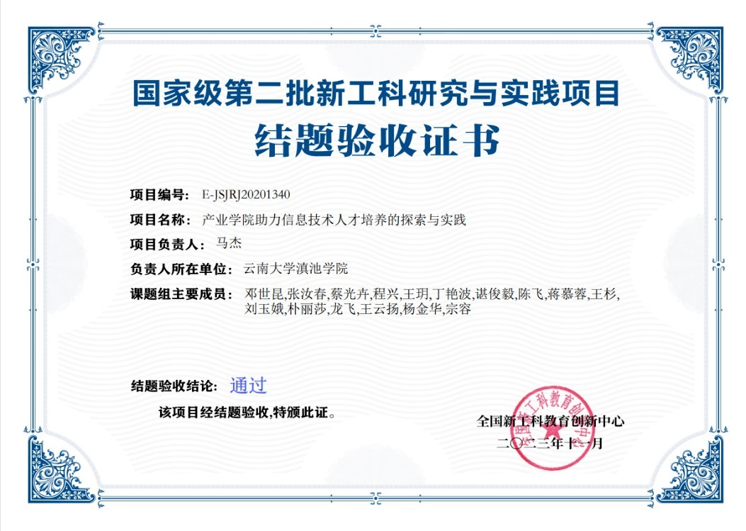 ◆国家级第二批新工科项目《产业学院助力信息技术人才培养的探索与实践》顺利通过结题验收。