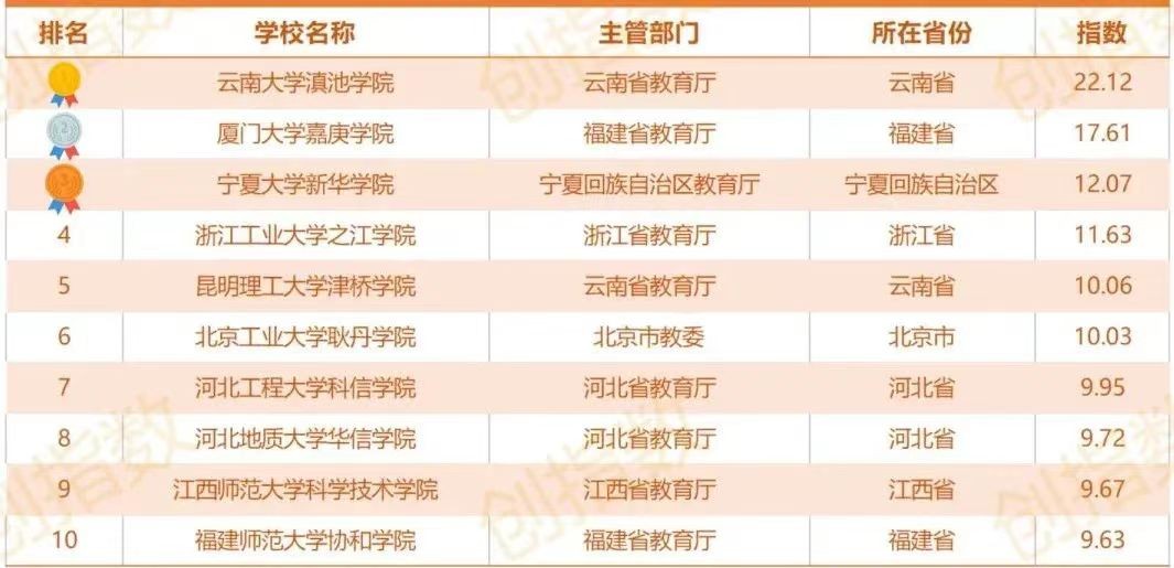 ◆滇池学院位列中国独立学院创新创业教育指数榜榜首。
