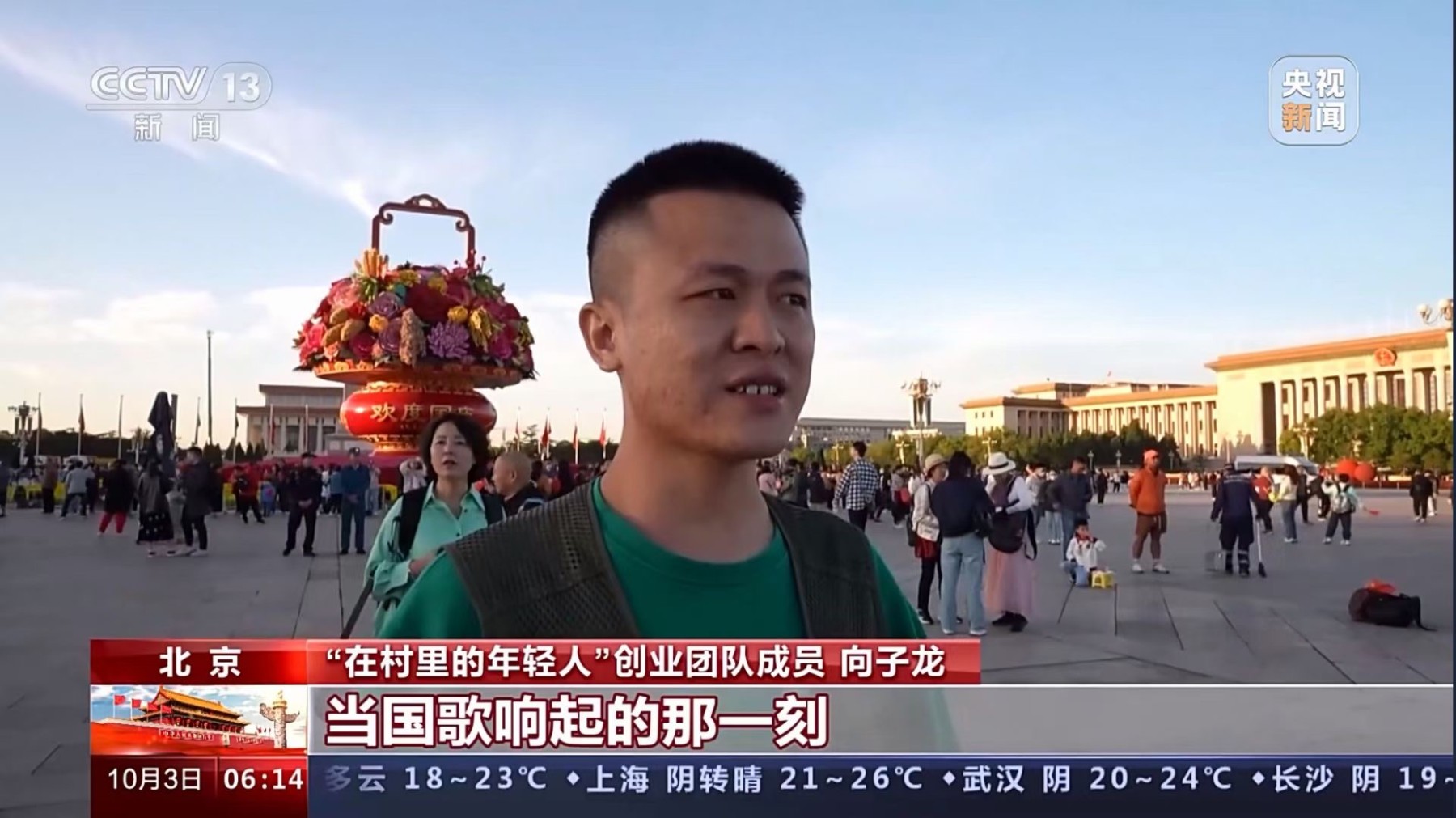 ◆中央电视台《朝闻天下》报道2023届毕业生向子龙同学团队圆梦之旅。该同学在校期间参军入伍,毕业后回到家乡与创业团队助力当地乡村振兴。国庆前夕,他们团队如约带领11名布依族妈妈到天安门广场看升旗仪式,圆了布依族妈妈们的梦。