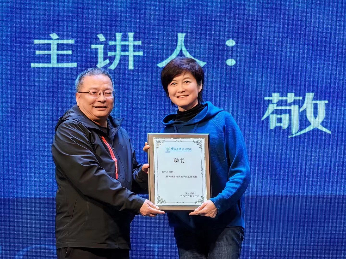 ◆聘任中央广播电视总台播音指导敬一丹为滇池学院客座教授。敬一丹老师在杨林校区报告厅作了题为《全媒体语境下文化类节目的创新空间》的讲座。