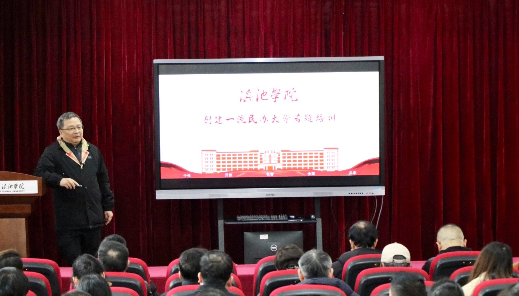 为进一步提高学校专业建设和人才培养质量,提升教职工队伍素质能力和水平,落实学校创建中国一流民办大学三年行动计划,1月15日,滇池学院创建一流民办大学专题培训在海埂校区举办,校长马杰、副校长高力作专题报告。