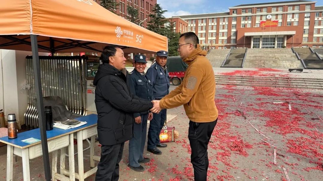 校领导的关心与问候暖意融融,使坚守岗位的教职工倍感亲切、深受鼓舞,大家纷纷感谢学校的关怀,表示定会恪尽职守、坚守岗位,认真做好假期期间校园安全稳定工作,让全校师生度过一个欢乐祥和的春节。