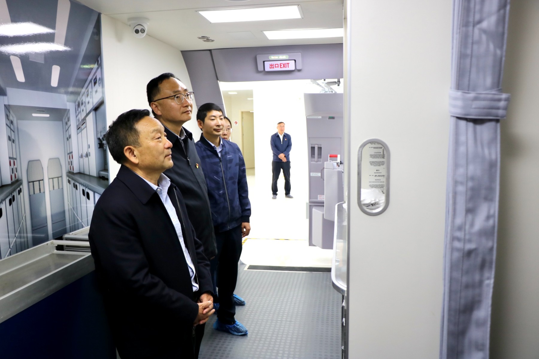 丁恒道书记一行在滇西应用技术大学党委书记罗进忠,党委副书记、党委组织部部长左华等陪同下参观滇西大总部建筑材料检测实验室、工程测量实验室和A330双通道航空飞行模拟舱。