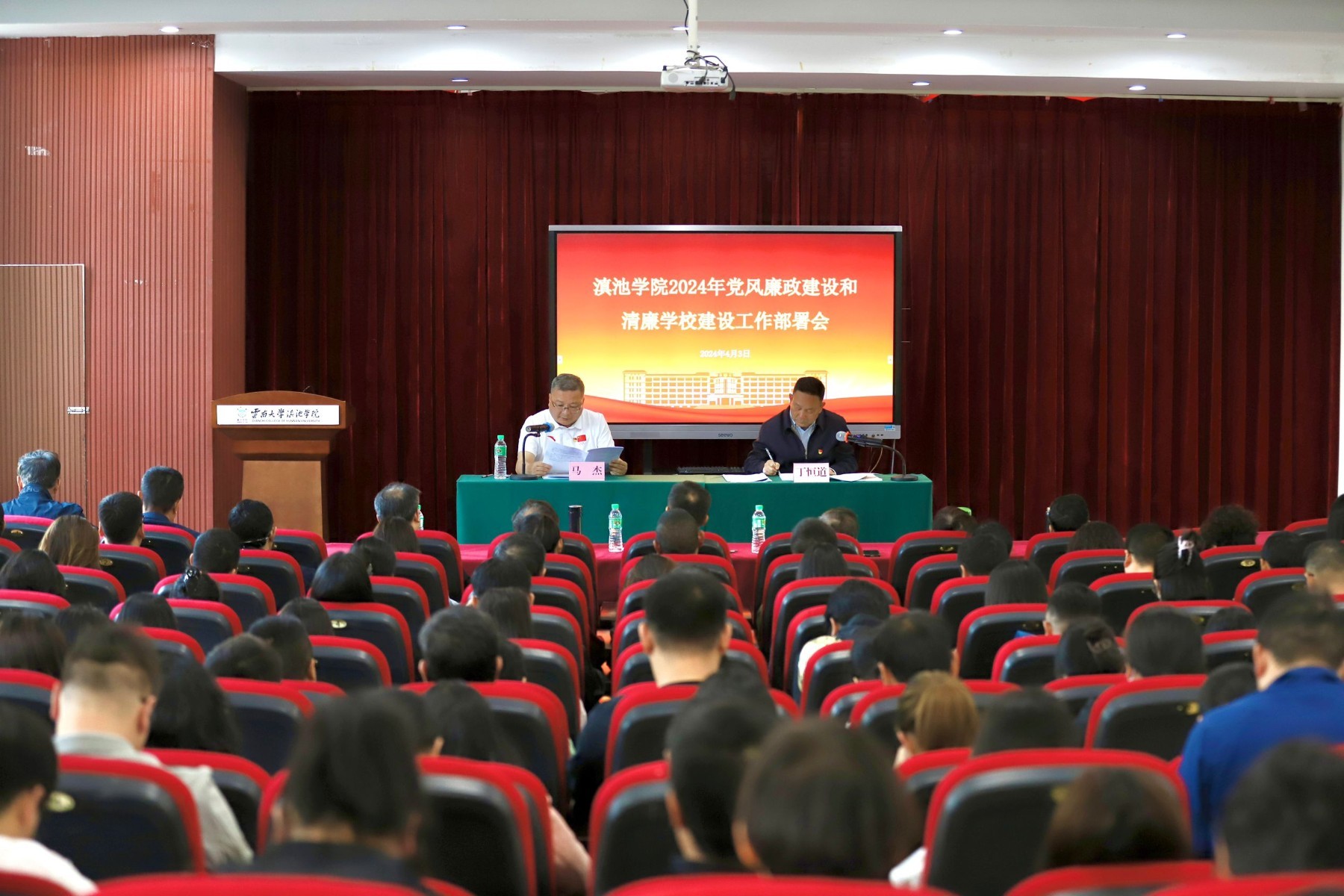 4月3日,滇池学院2024年党风廉政建设和清廉学校建设工作部署会在知行楼107报告厅召开。学校校领导、党委委员、董事会办公室主任,各职能部门、教辅部门负责人,各学院院长、副院长、教学助理、教学部主任,各党总支书记、纪检委员、组织员、宣传统战员、各党支部书记,教职工代表参加会议。