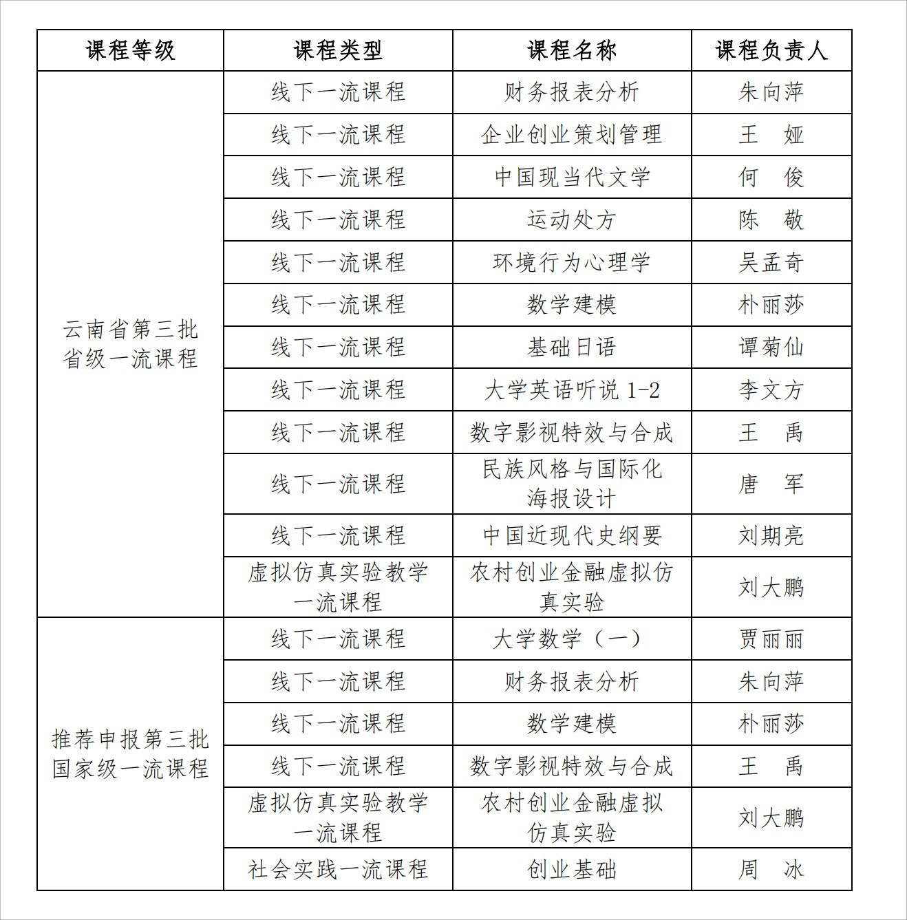 在云南省第三批一流本科课程认定工作中,我校12门课程获批省级一流课程。6门课程推荐申报第三批国家级一流本科课程认定。