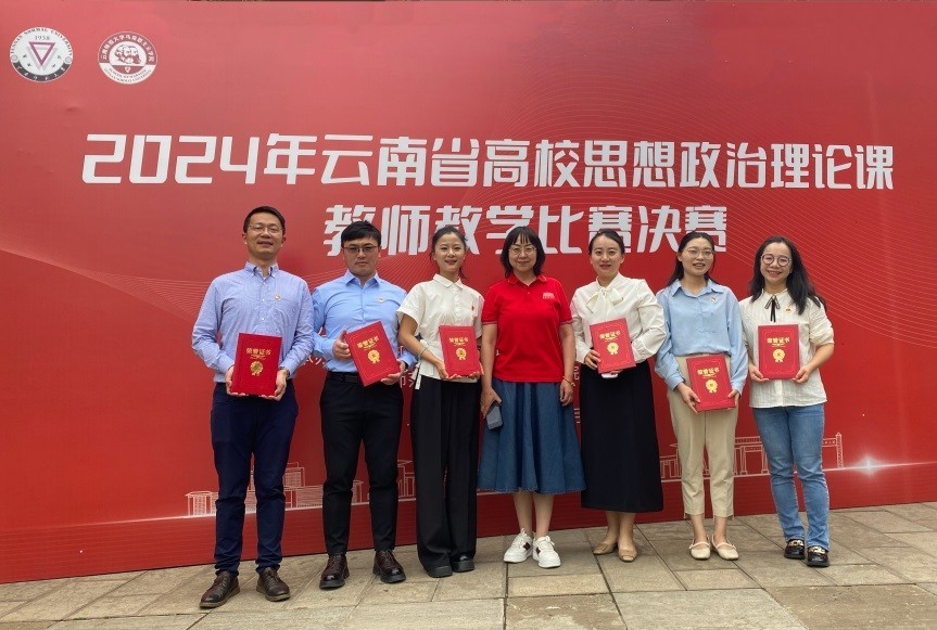 学校加强马克思主义学院建设,深入推进思政课教师素质提升工程,以赛促教,强师赋能,在2024年云南省高校思想政治理论课教师教学比赛中,张颖、付孝军、曾令令、李扬和刘期亮等5名教师获二等奖,段梦丽老师获三等奖。