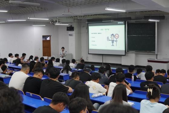 学生处副处长张晋铭老师从校规校纪教育、学生奖助政策、医保政策、宿舍管理规定、禁毒防艾教育、廉洁教育、心理健康教育等方面进行讲解,旨在增强新生对学校规章制度的了解,提升遵纪守法意识,规范自身行为。