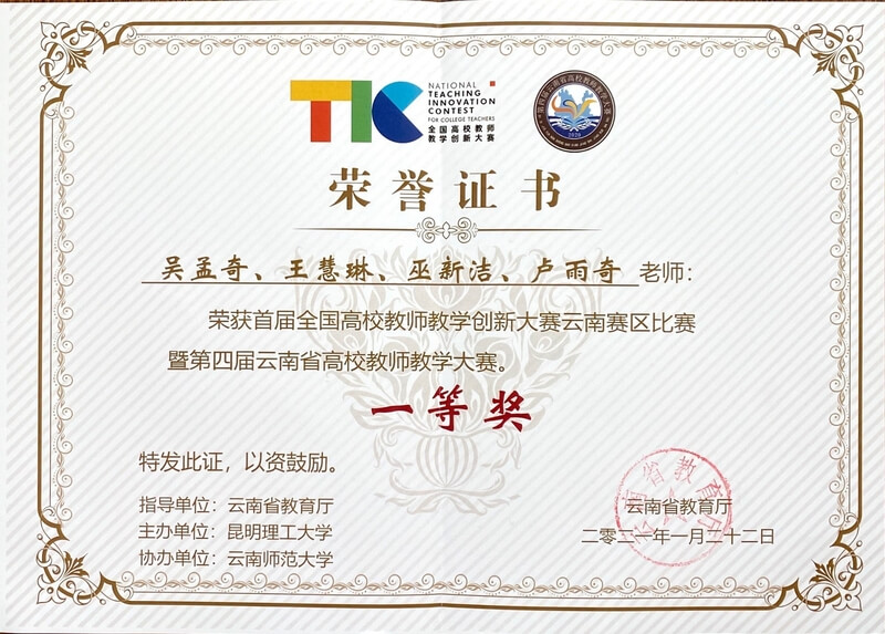 云南省教学成果二等奖 “数字化时代的土建类学生工程能力提升培养模式探索与实践”项目单位 。