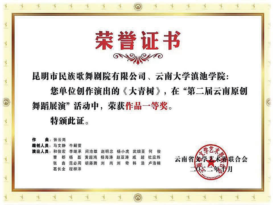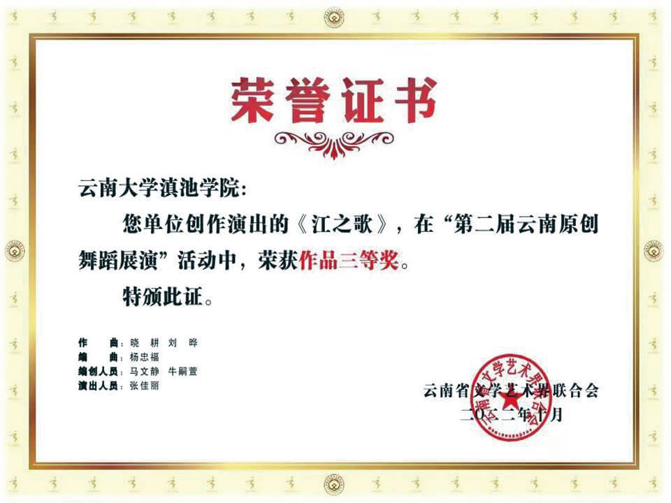 ● 荣获2022年第二届云南原创舞蹈展演,获得一等奖1项、三等奖1项、优秀组织奖1项;