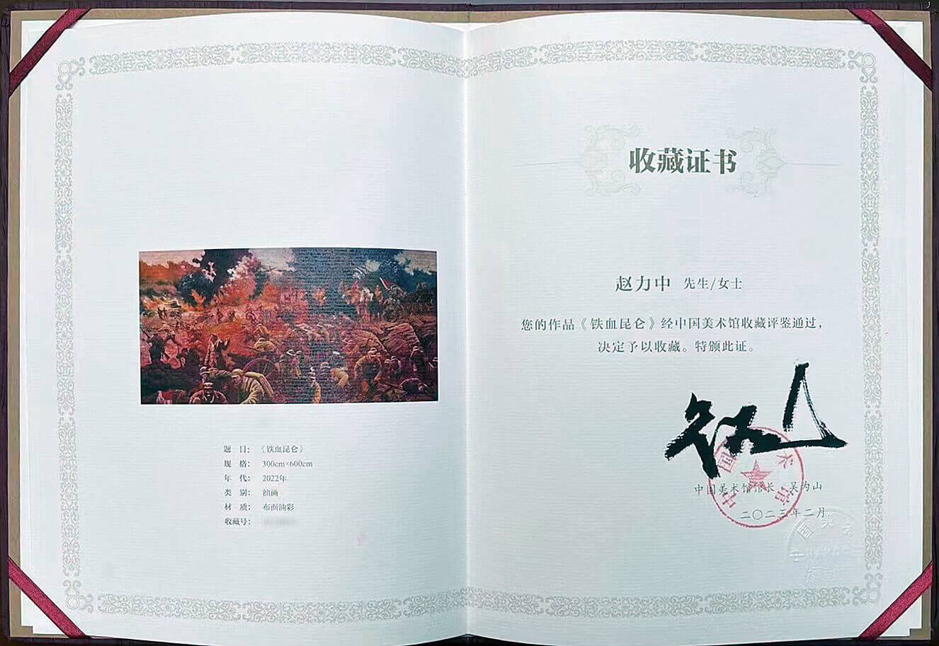 赵力中教授作品《铁血昆仑》在今年 2 月被中国美术馆永久收藏